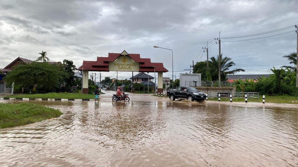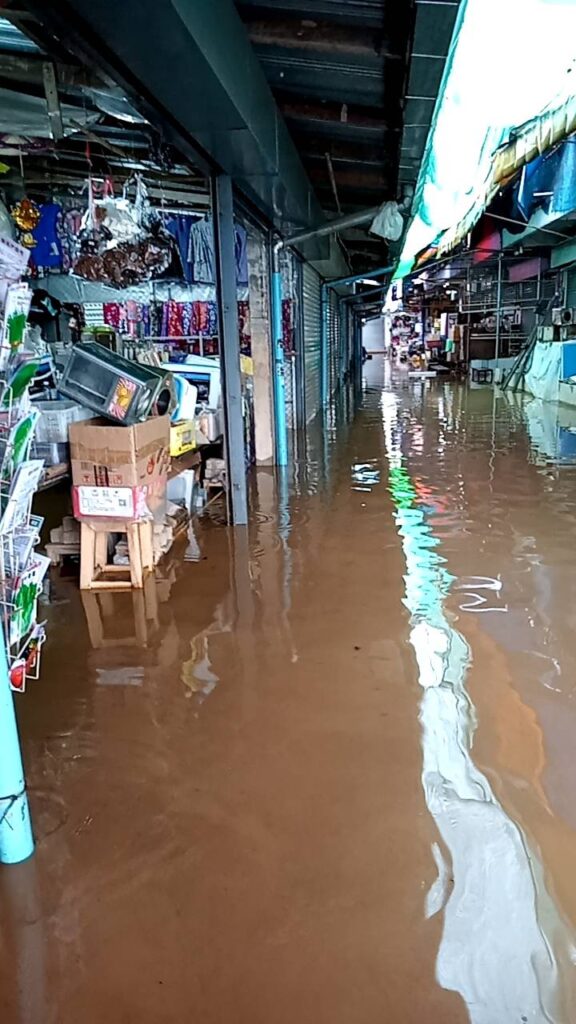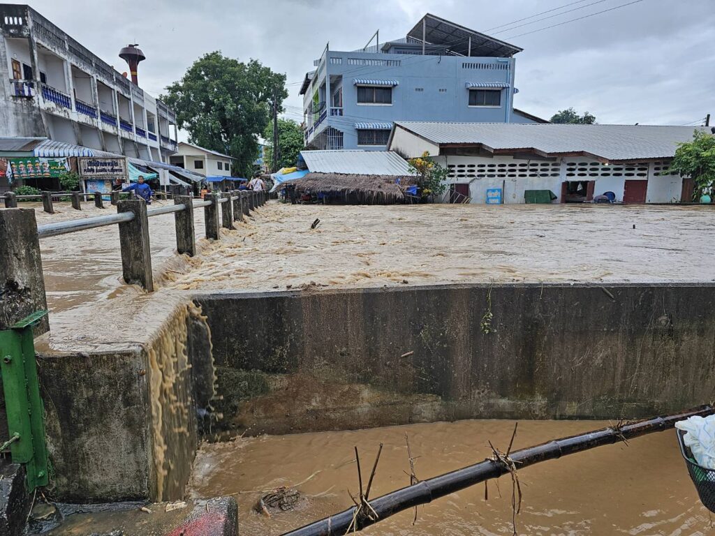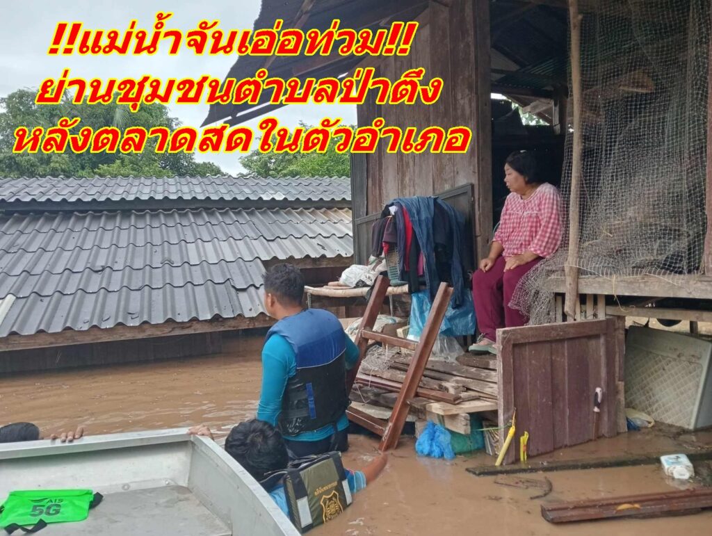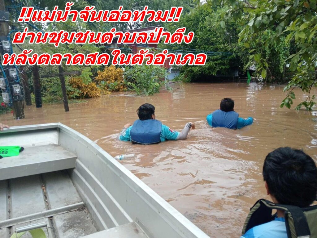!!แม่น้ำจันเอ่อท่วม!! ย่านชุมชนตำบลป่าตึง -หลังตลาดสดในตัวอำเภอ