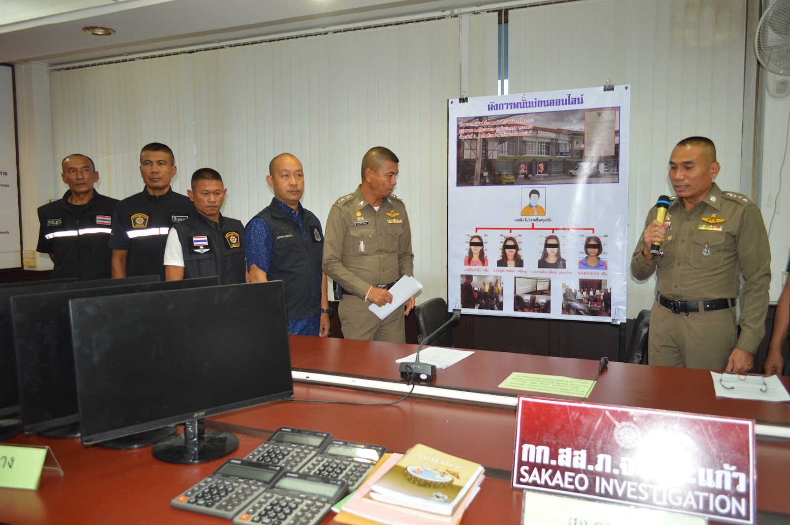 *****เมื่อเวลา 14.00 น.ของวันที่ 14 พ.ย.62 ผู้สื่อข่าวรายงานว่า พล.ต.ต.ปราศรัย จิตตสนธิ ผู้บังคับการตำรวจภูธรจังหวัดสระแก้ว มอบหมายให้ พ.ต.อ.เผ่าภากร รามนุช รอง ผบก.ภ.สระแก้ว พร้อมด้วย พ.ต.อ.จตุรภัทร สิงหัษฐิต ผกก.สืบสวน ตำรวจภูธรจังหวัดสระแก้ว และชุดสืบสวน ภ.จว.สระแก้ว ร่วมกับ พ.ต.อ.เรืองศักดิ์ บัวแดง ผกก.สภ.คลองลึก และ ร.ต. ถนัด มัธยมมาก รอง ผบ.ร้อย ทพ.1201 และเจ้าหน้าที่จำนวนหนึ่ง จู่โจมเข้าจับกุมบ่อนพนันออนไลน์ท้องที่ สภ.คลองลึก อ.อรัญประเทศ จ.สระแก้ว หลังสืบทราบว่า มีการย้ายฐานหนีการกวาดล้างมาจากฝั่งปอยเปต ประเทศกัมพูชา มาไว้ที่ หจก.เอสทีม พลัส ตึกอาคารพาณิชย์ เลขที่ 777/3 ถ.สุวรรณศร ทางเข้าตลาดโรงเกลือ ต.อรัญประเทศ อ.อรัญประเทศ จ.สระแก้ว เป็นสำนักงานแห่งใหม่ได้ระยะหนึ่ง