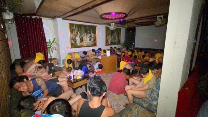 เมื่อเจ้าหน้าที่ตำรวจเข้าไปตรวจสอบภายในพบนักเที่ยวและพนักงานชายกำลังนั่งดื่มกินกันอย่างสนุกสนานอยู่ประมาณกว่า 60 คน