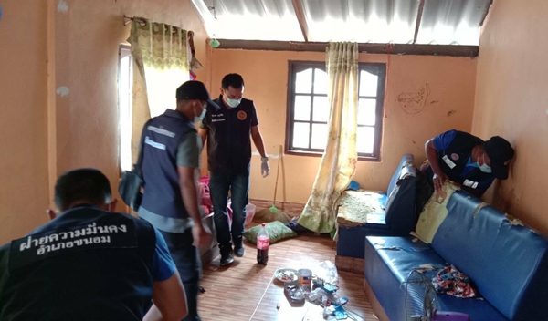 เดินทางไปตรวจค้นที่บ้านทั้งสองหลัง โดยค้นหลังแรกเลขที่ 80/5 พบนายมนัส เกาะก่ะ อายุ 29 ปี และนส.วราภรณ์ จิตสำราญ อายุ 23 ปี 2 ผัวเมียนอนอยู่ในห้องนอน ขณะนั้นนายวราภรณ์ พยามขอตัวเข้าห้องน้ำอ้างปวดหัวจะอ๊วก จนท.จึงพานส.วราภรณ์ไปห้องน้ำ แต่ทันใดนั้น นส.วราภรณ์พยายามหยิบเม็ดยาบ้าจำนวนหนึ่งเพื่อโยนทิ้งในห้องน้ำ แต่ จนท.เห็นเสียก่อน จึงทำการจับกุมทั้งสองผัวเมียและตรวจพบยาบ้าในห้องพักทั้งหมดรวม 45 เม็ด