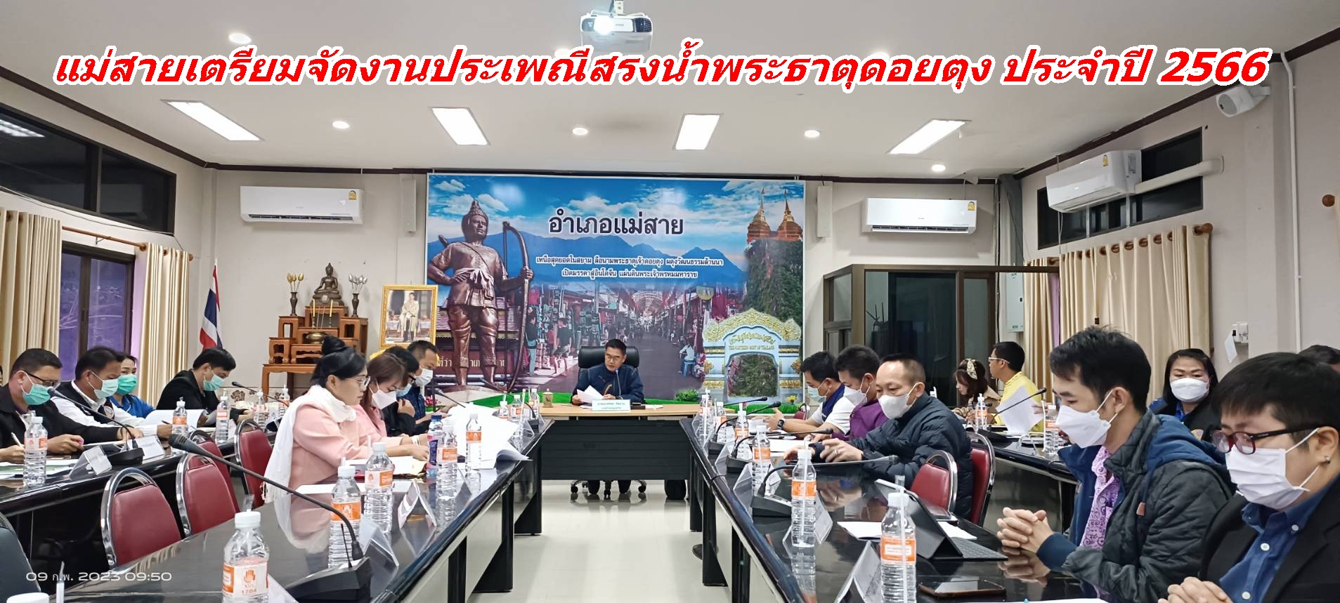 เมื่อวันที่ 9 ก.พ.66 เวลา 09.30 น. นายณรงค์พล คิดอ่าน นายอำเภอแม่สาย เป็นประธานในวาระการประชุมเตรียมการจัดงานประเพณีมนัสการสรงน้ำพระธาตุดอยตุง ประจำปี 2566 ในวันที่ 5-6 มี.ค.66 พร้อมด้วยหัวหน้าหน่วยงานข้าราชการ องค์กรปกครองส่วนท้องถิ่น อ.แม่สาย และวัฒนธรรมอำเภอแม่สาย เข้าร่วมประชุมหารือ ณ ห้องประชุมชั้น 2 ที่ว่าการ อ.แม่สาย ในงานจาริกแสวงบุญ เตียวขึ้นดอย ตวยฮอยครูบา ไหว้สาพระตุดอยตุง พีบวงสรวงพระธาตุดอยตุง พิธีสืบชะตาหลวงแบบล้านนา พีแห่ขบวนเครื่องสักการ สรงน้ำพระราชทานอัญเชิญผ้าไตรพระราชทาน และห่มผ้าพระธาตุพระราชทาน ซึ่งได้ถือปฏิบัติสืบทอดกันมาเป็นเวลายาวนานของจังหวัดเชียงราย..