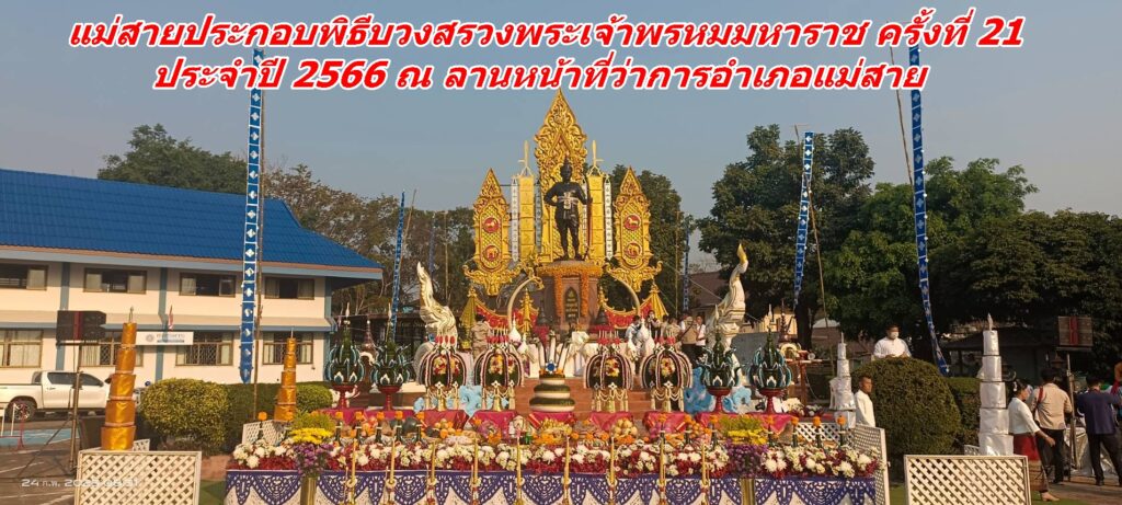 แม่สายประกอบพิธีบวงสรวงพระเจ้าพรหมมหาราช ครั้งที่ 21 ประจำปี 2566 ณ ลานหน้าที่ว่าการอำเภอแม่สาย