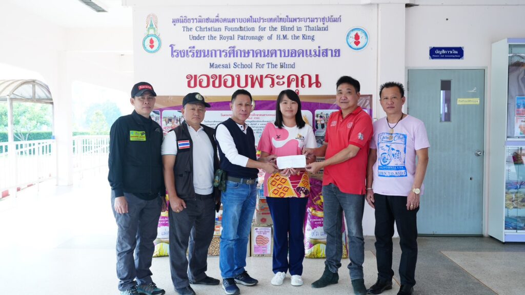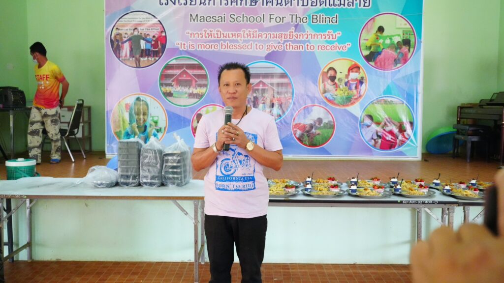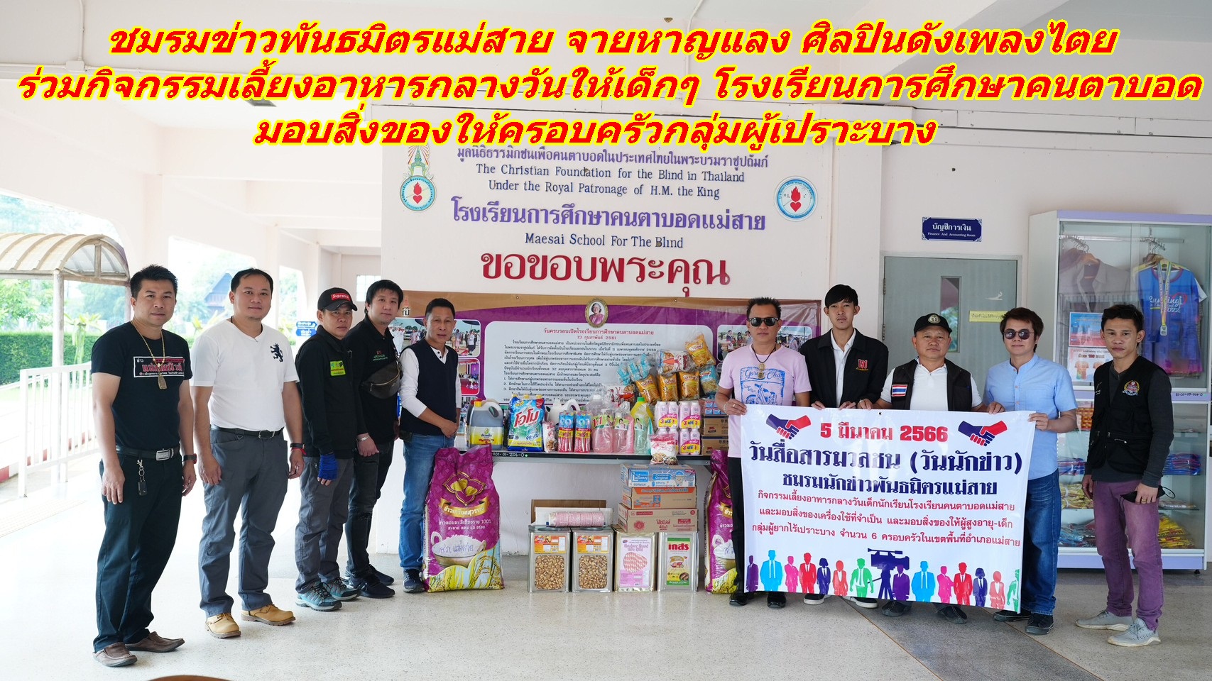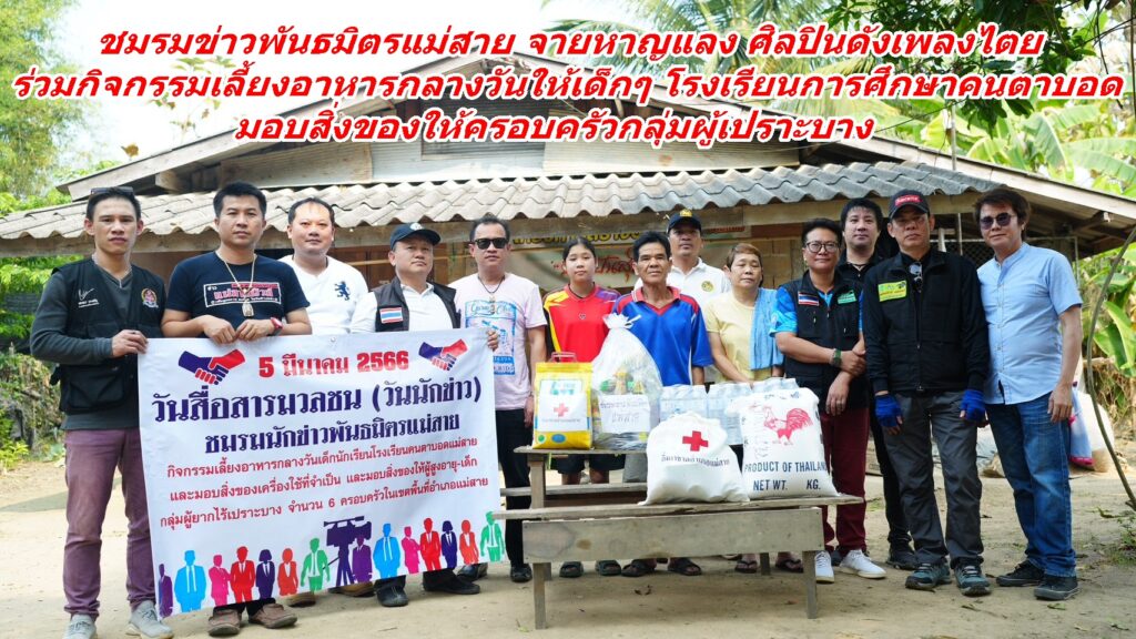 ชมรมข่าวพันธมิตรแม่สาย จายหาญแลง ศิลปินดังเพลงไตย ร่วมกิจกรรมเลี้ยงอาหารกลางวันให้เด็กๆ โรงเรียนการศึกษาคนตาบอด มอบสิ่งของให้ครอบครัวกลุ่มผู้เปราะบาง