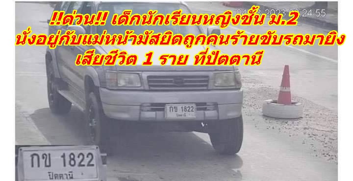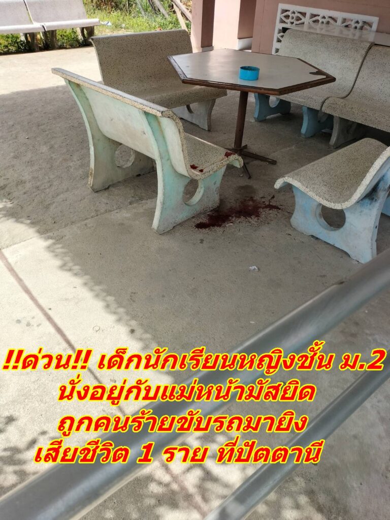 !!ด่วน!! เด็กนักเรียนหญิงชั้น ม.2 นั่งอยู่กับแม่หน้ามัสยิด ถูกคนร้ายขับรถมายิง เสียชีวิต 1 ราย ที่ปัตตานี