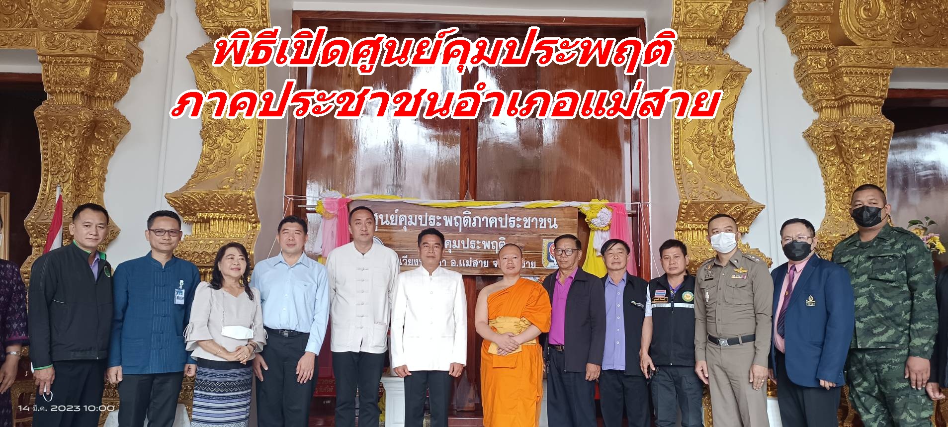 วันอังคารที่ 14 มีนาคม 2566 เวลา 09.30 น. นายณรงค์พล คิดอ่าน นายอำเภอแม่สาย ได้เป็นประธานในพิธีเปิดศูนย์คุมประพฤติภาคประชาชนอำเภอแม่สาย โดยมีพระภาวนาโกศลเถร (ชูวิทย์ อัคควิชโช) รองเจ้าคณะจังหวัดเชียงราย มอบเกียรติบัตรให้แก่ผู้ทำคุณประโยชน์ และรับมอบทุนเพื่อสนับสนุนศูนย์คุมประพฤติฯ ณ วัดพรหมวิหาร ตำบลเวียงพางคำ อำเภอแม่สาย จังหวัดเชียงราย ซึ่งพิธีเปิดศูนย์คุมประพฤติภาคประชาชนอำเภอแม่สาย ได้มีเจ้าหน้าที่สำนักงานคุมประพฤติจังหวัดเชียงราย หัวหน้าส่วนราชการ แขกผู้มีเกียรติ และผู้ถูกคุมความประพฤติเข้าร่วมพิธีเปิดศูนย์คุมประพฤติในกิจกรรมในครั้ง