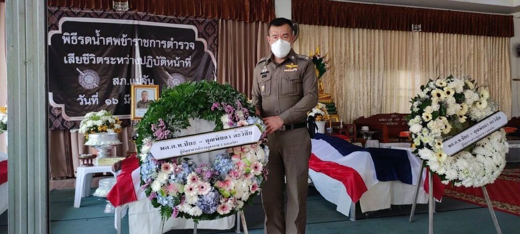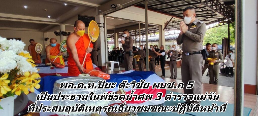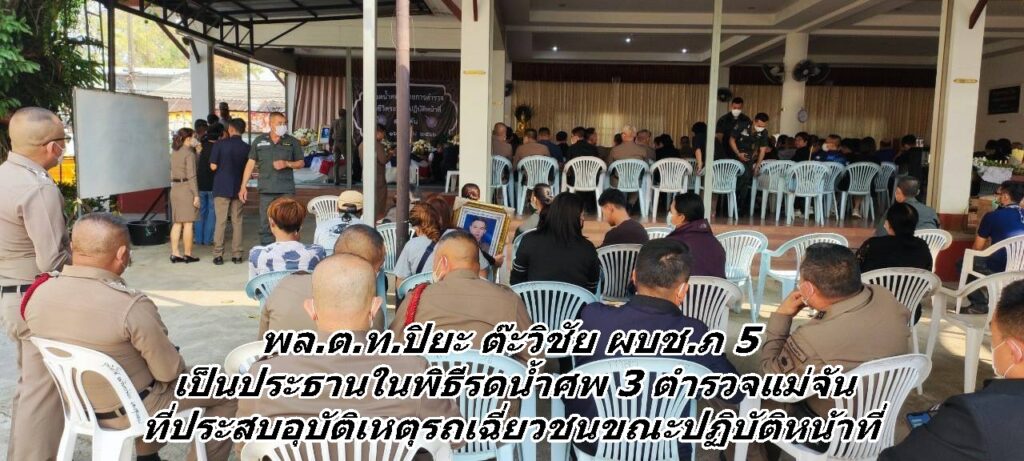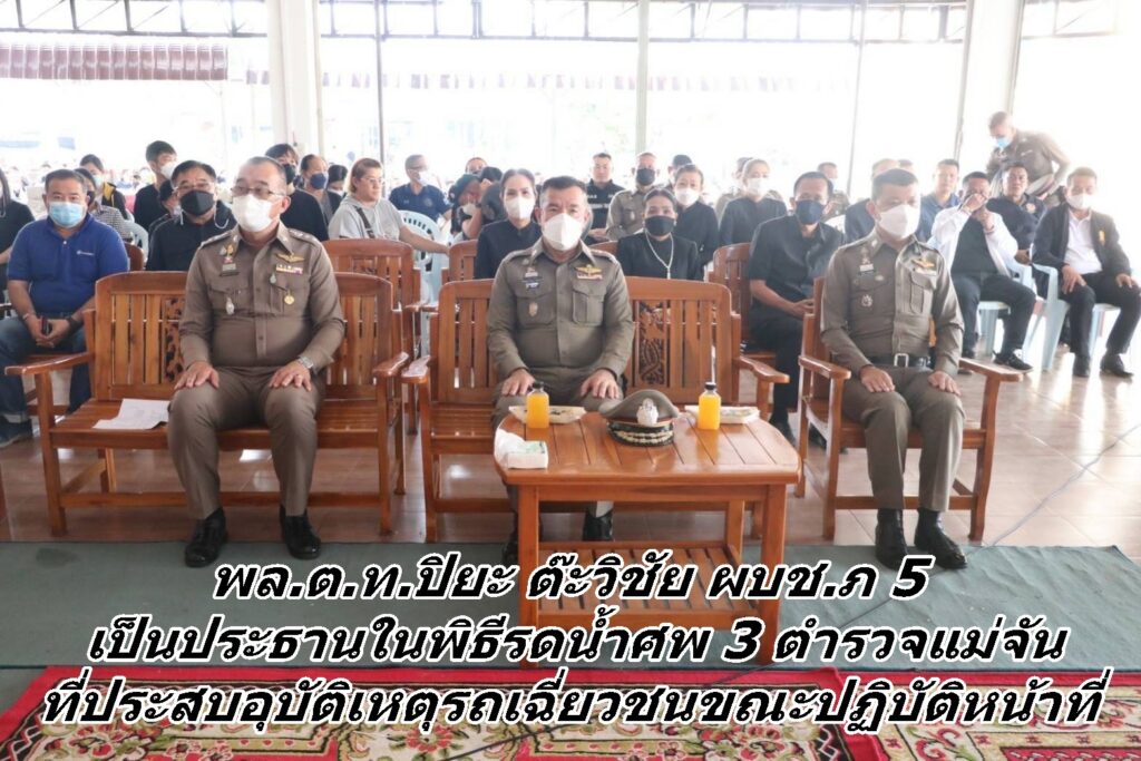 พล.ต.ท.ปิยะ ต๊ะวิชัย ผบช.ภ 5 เป็นประธานในพิธีรดน้ำศพ 3 ตำรวจแม่จัน ที่ประสบอุบัติเหตุรถเฉี่ยวชนขณะปฏิบัติหน้าที่