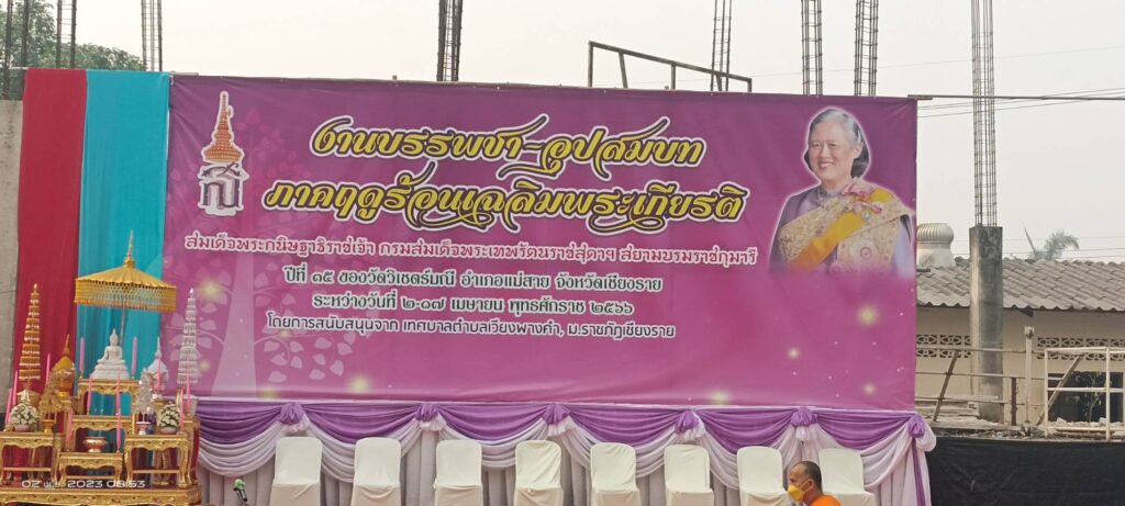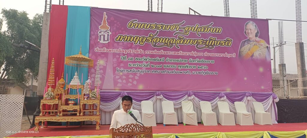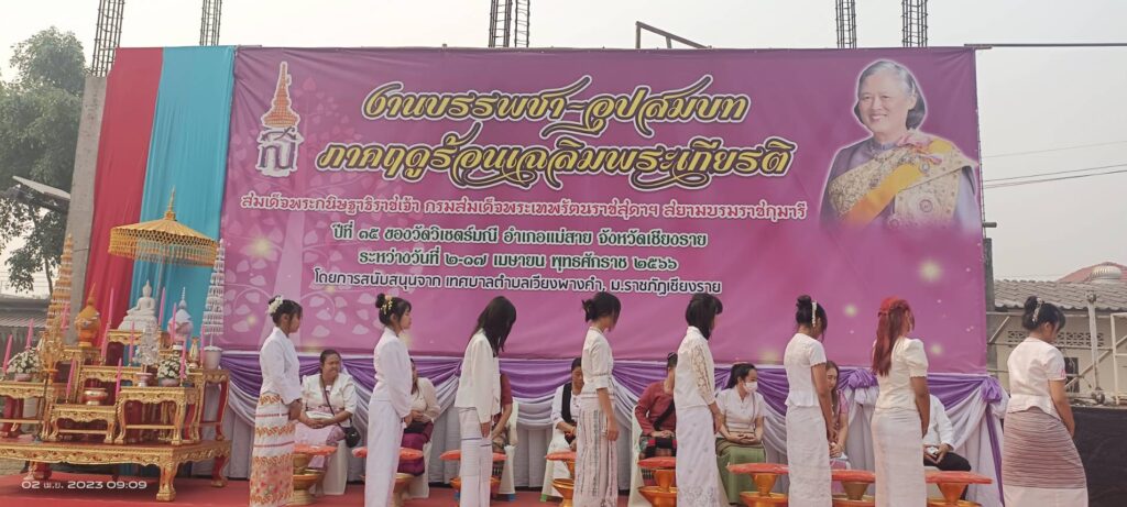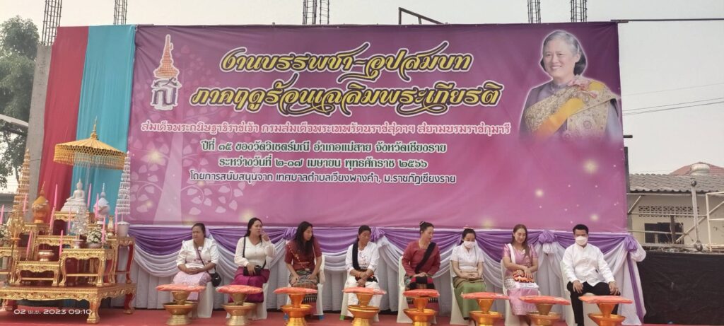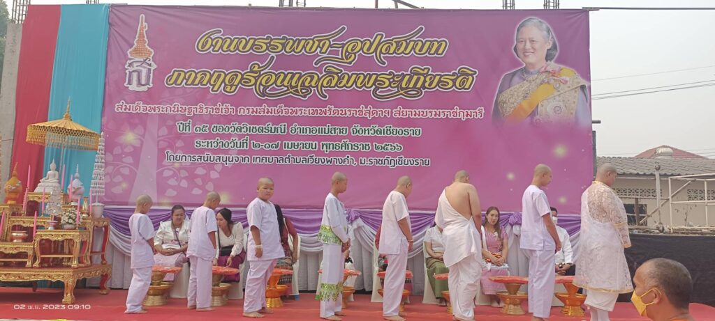 เมื่อวันที่ 2 เมษายน 2566 เวลา 09.09 น. นายณรงค์พล คิดอ่าน นายอำเภอแม่สาย เป็นประธานพิธีบรรพชาอุปสมบทภาคฤดูร้อนเฉลิมพระเกียรติ สมเด็จพระกนิษฐาธิราชเจ้า กรมสมเด็จพระเทพรัตนราชสุดาฯ สยามบรมราชกุมารี ในวโรกาสคล้ายวันพระราชสมภพที่พระองค์ทรงพระชนมายุครบ 68 พรรษา พร้อมด้วย พระเดชพระคุณหลวงพ่อพระครูวิสุทธิธรรมภาณี เจ้าอาวาสวัดวิเชตร์มณี เจ้าคณะอำเภอแม่สาย (ประธานฝ่ายสงฆ์) และ นายธนทรัพย์ เกเย็น รองนายกเทศบาลเวียงพางคำ นายเสาร์คำ คำเหลือง ผู้ใหญ่บ้าน บ.ป่ายาง ม.4 ผู้ปกครองของนาค คณะเจ้าภาพบรรพชาอุปสมบท ศรัทธาสาธุชน เข้าร่วมโครงการงานบรรพชาอุปสมบทเฉลิมพระเกียรติ เพื่อถวายเป็นพระราชกุศล ประจำปี 2566 ครั้งที่ 35 โดยอุปสมบทเป็นพระภิกษุ จำนวน 1 รูป บรรพชาเป็นสามเณร 34 รูป รวม 35 รูป เพื่อส่งเสริมสนับสนุนในการปลูกฝังให้ความรู้ความเข้าใจในพระธรรมคำสั่งสอนในทางพระพุทธศาสนาและซึมซับความเป็นพุทธศาสนิกชนที่สมบูรณ์ในช่วงปิดภาคเรียน ให้แก่เยาวชนของชาติ ณ วัดวิเซตร์มณี ต.เวียงพางคำ อ.แม่สาย จ.เชียงราย