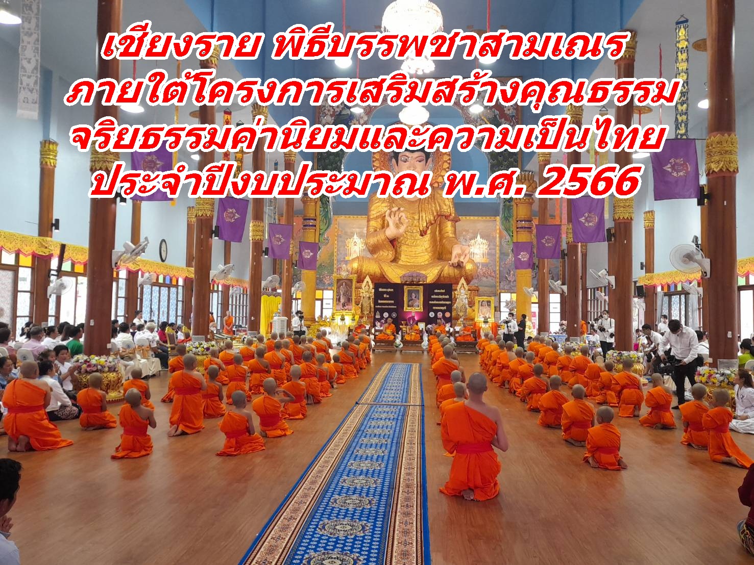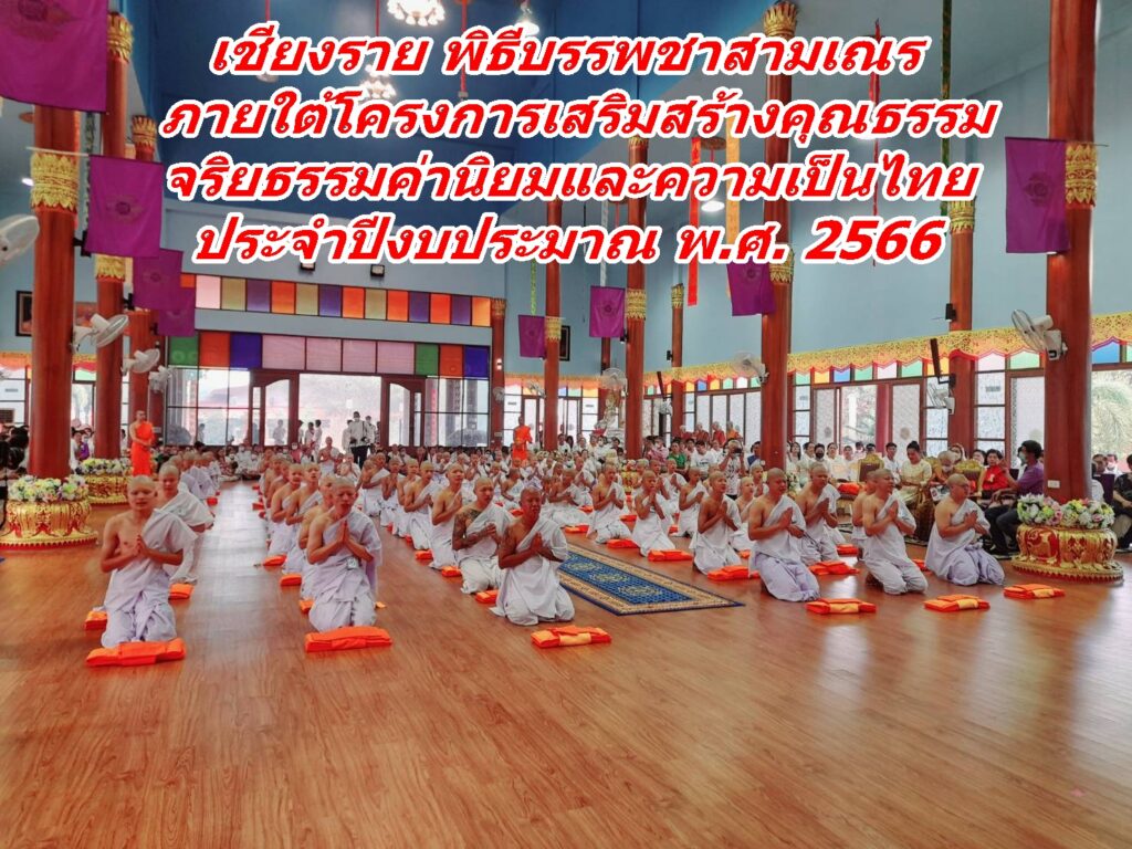 เชียงราย พิธีบรรพชาสามเณร ภายใต้โครงการเสริมสร้างคุณธรรมจริยธรรม ค่านิยมและความเป็นไทย ประจำปีงบประมาณ พ.ศ. 2566