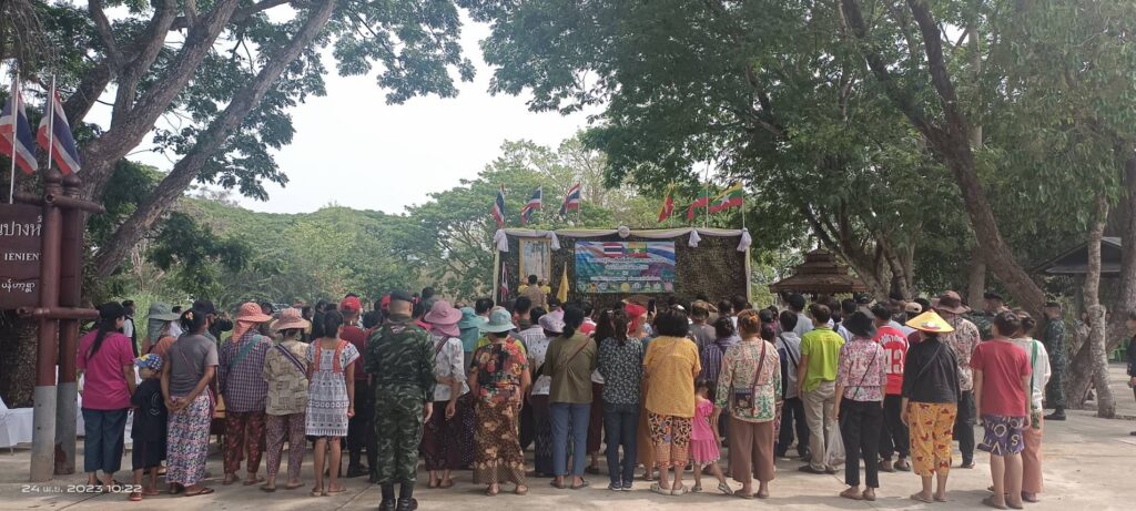 เมื่อวันที่ 24 เม.ย.66 เวลา 09.30 น. นายยศพงศ์ ตุลาชม ปลัดอำเภอหัวหน้าฝ่ายความมั่นคงอำเภอแม่สาย เป็นผู้แทน นายณรงค์พล คิดอ่าน นายอำเภอแม่สาย ประธานในพิธีเปิดกิจกรรมโครงการหมู่บ้านเข้มแข็งคู่ขนานตามแนวชายแดน ด้าน อ.แม่สาย – ท่าขี้เหล็ก พร้อมด้วย พ.ท.กฤฒิชัย กองกิจ ผู้บังคับกองบังคับการควบคุมผาทมิฬ ฉก.ทัพเจ้าตาก ร.ท.ชัยวัฒน์ ทิตยศักดิ์ ผบ.ร้อย ม.4 ฉก.ทัพเจ้าตาก ร.ท.นิคม ดอกพรม ชป.กร.313 กกล.ผาเมือง นายสุชาติ พีระบรรณ์ กำนัน ต.ป่ากุ๊กเหนือ ท่าขี้เหล็ก นายบุญรันต์ นันทะชัย ผู้ใหญ่บ้าน บ.ป่ากุ๊กเหนือ นายส่ง เตวิยะ ต.ป่ากุ๊กเหนือ ท่าขี้เหล็กใต้ และหน่วยงานราชการไทย – เมียนมา พีน้องประชาชนทั้ง 2 ฝั่ง เข้าร่วมกิจกรรมโครงการหมู่บ้านเข้มแข็งคู่ขนานตามแนวชายแดน ณ บริเวณ จุดผ่อนปรนการค้า บ.ปางห้า ม.1 ต.เกาะช้าง อ.แม่สาย จ.เชียงราย โดยงานนี้รับชมการแสดงศิลปวัฒนธรรมท้องถิ่นของชาวบ้านปางห้า นักเรียบนักศึกษา บ.ปางห้า และจากพีน้อง บ.ป่ากุ๊ก ท่าขี้เหล็ก และมีการสาธิตดับไฟป่าจาก สถานีควบคุมไฟป่าพื้นที่ทรงงานดอยตุงฯ ปล่อยปลาลงแม่น้ำรวก – ปลูกต้นไม้ (ต้นกาสะลองคำ) โดยมีการแข่งขันกีฬาเชื่อมความสัมพันธ์ (เซปักตระกร้อ) กีฬาพื้นบ้าน (ยิงเป้า) ด้วยหนังสติ๊ก และกอล์ฟคนจน) ซึ่งกิจกรรมโครงการหมู่บ้านเข้มแข็งคู่ขนานตามแนวชายแดนในครั้งนี้เป็นไปอย่างชื่นมื่นของบ้านพีเมืองน้องไทย-เมียนมา ทั้ง 2 ฝั่ง