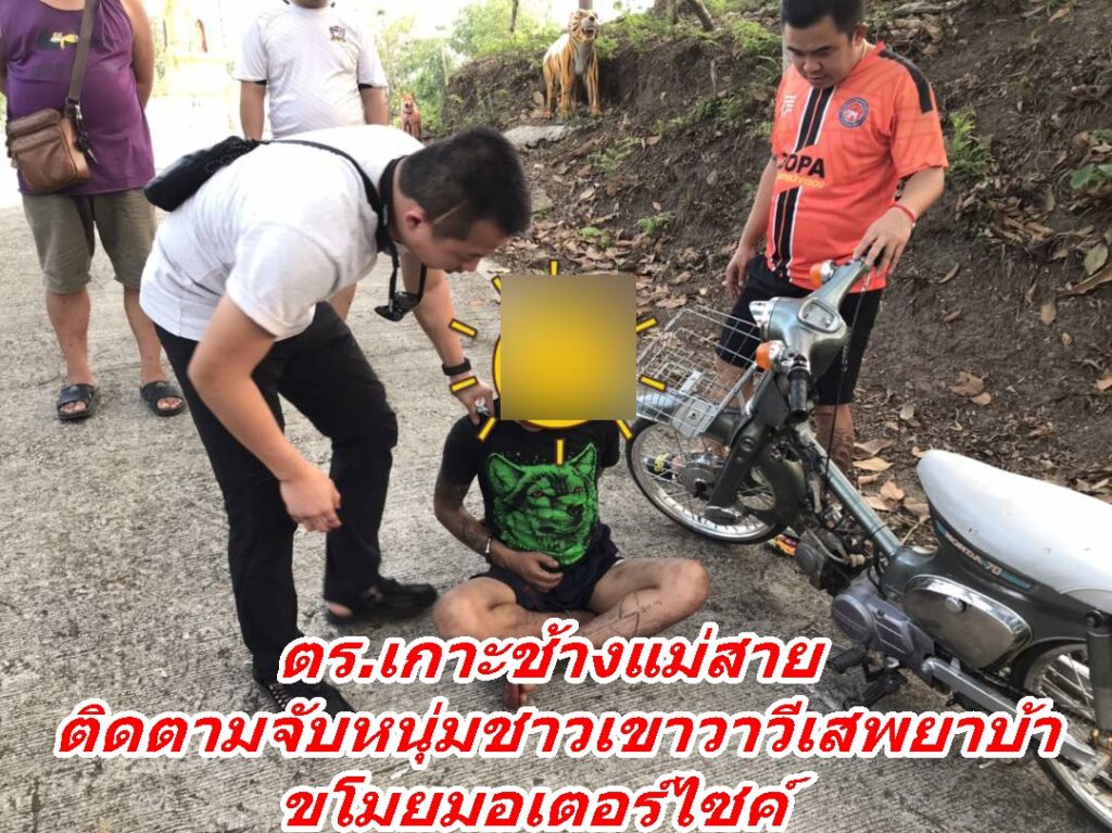 ตร.เกาะช้างแม่สาย ติดตามจับหนุ่มชาวเขาวาวีเสพยาบ้า ขโมยมอเตอร์ไซค์