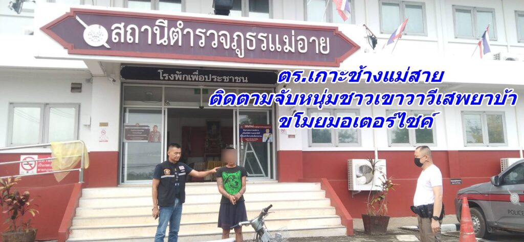 ต่อมาในวันที่ 30 เม.ย.65 พ.ต.ต.กฤตกรณ์ กันจินะ สว.สส.สภ.เกาะช้าง พร้อม ร.ต.อ.โกศล ปวงจันต๊ะ รอง สว.สส.สภ.เกาะช้าง ได้รับรายงานจากแหล่งข่าวว่าคนร้ายพร้อมรถมอเตอร์ไซค์ของกลางได้หลบหนีไปยังเขตพื้นที่ของ สภ.แม่อาย จ.เชียงใหม่ จึงได้เดินทางเข้าไปประสานงานยัง พ.ต.ต.ชัยพล ชัยชนะ สว.สส.สภ.แม่อาย และชุดสืบสวน สภ.แม่อาย จนสามารถยึดรถ ยี่ห้อ ฮอนด้า รุ่น C70 สีเขียวอ่อน หมายเลขทะเบียน ว 8091 เชียงราย กลับคืนมาได้ และจับกุม นายยอละ จะโพะ อายุ 30 ปี อยู่บ้านเลขที่ 151 ม.1 ต.วาวี อ.แม่สรวย จ.เชียงราย ในเขตพื้นที่ สภ.แม่อาย เบื้องต้นผู้ต้องหาให้การรับสภาพว่าเป็นคนก่อเหตุลักรถจักรยานยนต์และเสพยาบ้าจริง พร้อมยังให้การเพิ่มว่าตนเองเพิ่งพ้นโทษออกมาจากเรือนจำ เจ้าหน้าที่ชุดจับกุมจึงได้ส่งตัวผู้หาดำเนินคดีตามกฎหมาย ส่วนรถจักรยานยนต์ที่ถูกขโมยไปได้นำส่งคืนผู้ที่เป็นเจ้าของในเขตพื้นที่ สภ.เกาะช้าง…