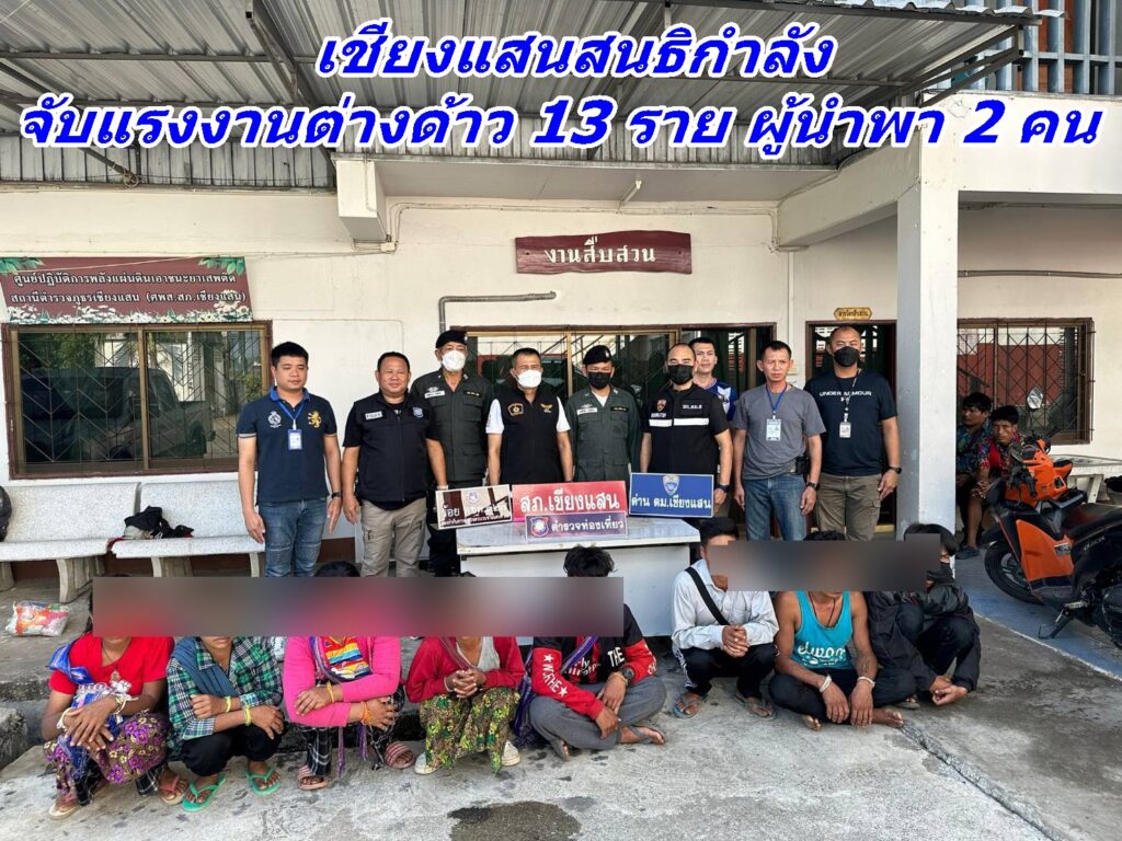 เชียงแสนสนธิกำลัง จับแรงงานต่างด้าว 13 ราย ผู้นำพา 2 คน