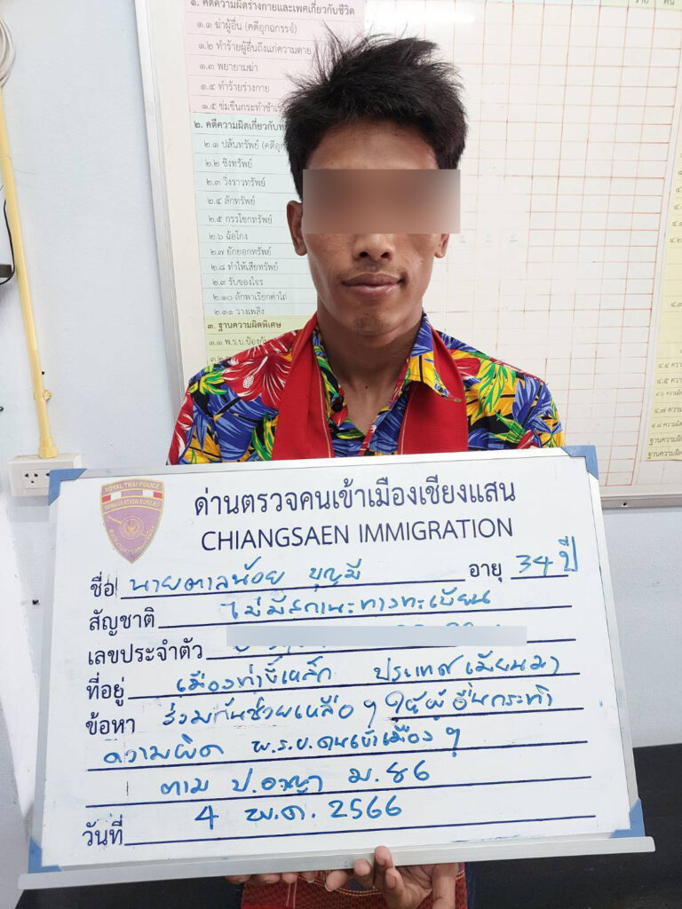 วันนี้ 4 เมษายน 2566 เวลาประมาณ 12.00 น. ภายใต้การอำนวยการขอ พล.ต.วณัฐ ลักษณสิริ ผบ.ขกท. พ.ต.อ.ถนัด ชุมมะโน ผกก.สภ.เชียงแสน ว่าที่ พ.ต. อ.ชินกร อัศวภูมิ ผกก.ด่าน ตม.เชียงแสน พ.ต.อ.อดุลย์ สิริสิทธินันท์ ผกก.ตชด.32 พ.ต.ท.กิติภูมิ กันจินะ รอง ผกก.สภ.เชียงแสน พ.ต.ต.บดินทร์ ศรีอ่อน สว.ส.รน.1 กก.12 บก.รน. และเจ้าหน้าที่ กก.2 บก.ปคม. ร.ต.ต. คณิศร พรหมเดช รอง สว.ตร.ท่องเที่ยวเชียงแสน พร้อมเจ้าหน้าที่กำลังพลชุดสืบสวนทั้ง 6 หน่วย ได้วางกำลังตามเส้นทางในเขตพื้นที่ อ.เชียงแสน จ.เชียงราย หลังจากได้รับรายงานจากแหล่งข่าวว่าจะมีการแอบลักลอบนำพาแรงงานต่างด้าวเข้ามาในเขตพื้นที่ อ.เชียงแสน ในเวลาต่อมาทางเจ้าหน้าที่ชุดปฏิบัติการได้พบรถกระบะ ยี่ห้อ โตโยต้า รุ่นวีโก้ สีดำ ทะเบียน ผจ 2011 นครปฐม ต้องสงสัยตามที่ได้รับรายงาน จึงได้ส่งสัญญาณให้รถคันดังกล่าวหยุดเพื่อขออนุญาตตรวจค้น บริเวณถนนสาธารณะในหมู่บ้านศรีบุญยืนแยกไปบ้านป่าสักน้อย บ้านศรีบุญยืน ม.10 ต.ศรีดอนมูล อ.เชียงแสน หลังจากการตรวจค้นภายในรถพบ นาย ตาลน้อย บุญมี อายุ 34 ปี ถือบัตรประจำตัวผู้ที่ไม่มีสถานะทางทะเบียน (บัตรหัว 0 ) อยู่บ้านเลขที่ 367 ม. 8 ต.โป่งงาม อ.แม่สาย จ.เชียงราย เป็นคนขับขี่รถคันดังกล่าว และนายอิกเส สาย (MR.EIKE SAY) อายุ 29 ปี สัญชาติเมียนมา ถือเอกสารหนังสือเดินทางบายเดอร์พาสข้ามแดนของประเทศเมียนมา พร้อมจับกุมแรงงานต่างด้าวสัญชาติเมียนมาทั้งหญิง-ชาย รวมได้13 คน โดยเป็นเยาวชนหญิง จำนวน 3 คน หลังจากการสอบปากคำของทางเจ้าหน้าที่ นายตาลน้อย บุญมีฯ ที่เป็นคนขับขี่รถ และนายอิกเส สาย (MR.EIKE SAY) สัญชาติเมียนมา ให้การรับสภาพว่าเป็นผู้ช่วยเหลือนำพาแรงงานต่างด้าวมาจากเขตพื้นที่ชายแดน อ.แม่สาย เพื่อนำไปส่งปลายทางที่จังหวัดนครปฐม และได้ค่าหัวคนละ 5,000 บาท เจ้าหน้าที่ชุดจับกุมจึงได้นำตัวผู้ต้องหาในคดี พรบ.หลบหนีเข้าเมือง ซึ่งเป็นบุคคลต่างด้าวอยู่ในราชอาณาจักรโดยไม่ได้รับอนุญาต นำส่งพนักงานสอบสวน สภ.เชียงแสน เพื่อดำเนินคดีตามกฎหมาย และขยายผลหากลุ่มเครือข่ายแรงงานต่างด้าวที่จับได้ในครั้งนี้ต่อไป…