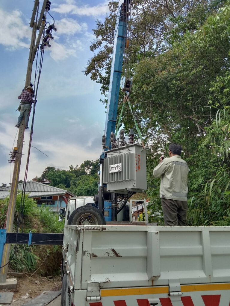 โทรติดต่อสอบถามข้อมูล – 062-0371325 – ไอดีไลน์ mm225588 (บก.เจี๊ยบแม่สายนิวส์ ) และทีมงานโฟร์แมนออกแบบติดตั้งหม้อแปลงไฟฟ้าแรงสูงทั้ง ส่ง-ปลีก ( คุณเบิ่ม ป่าซางแม่จัน )