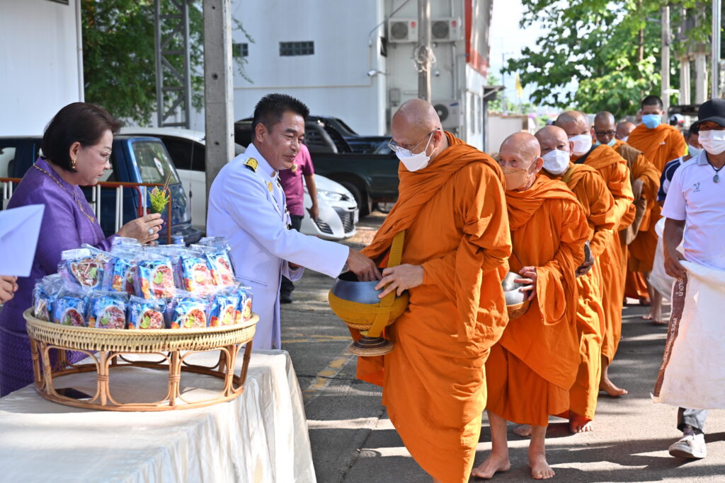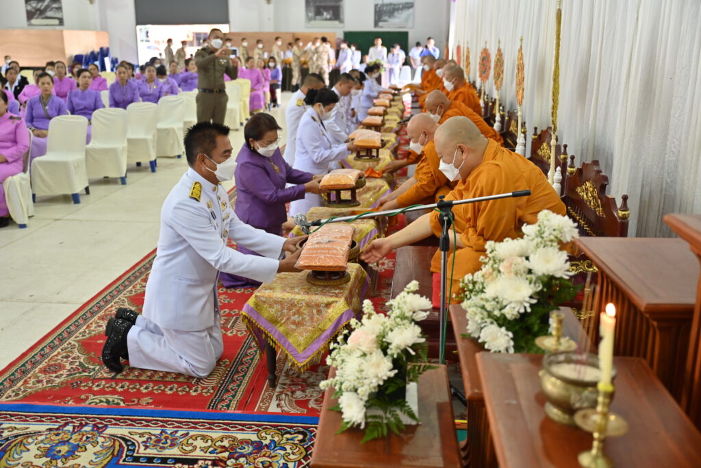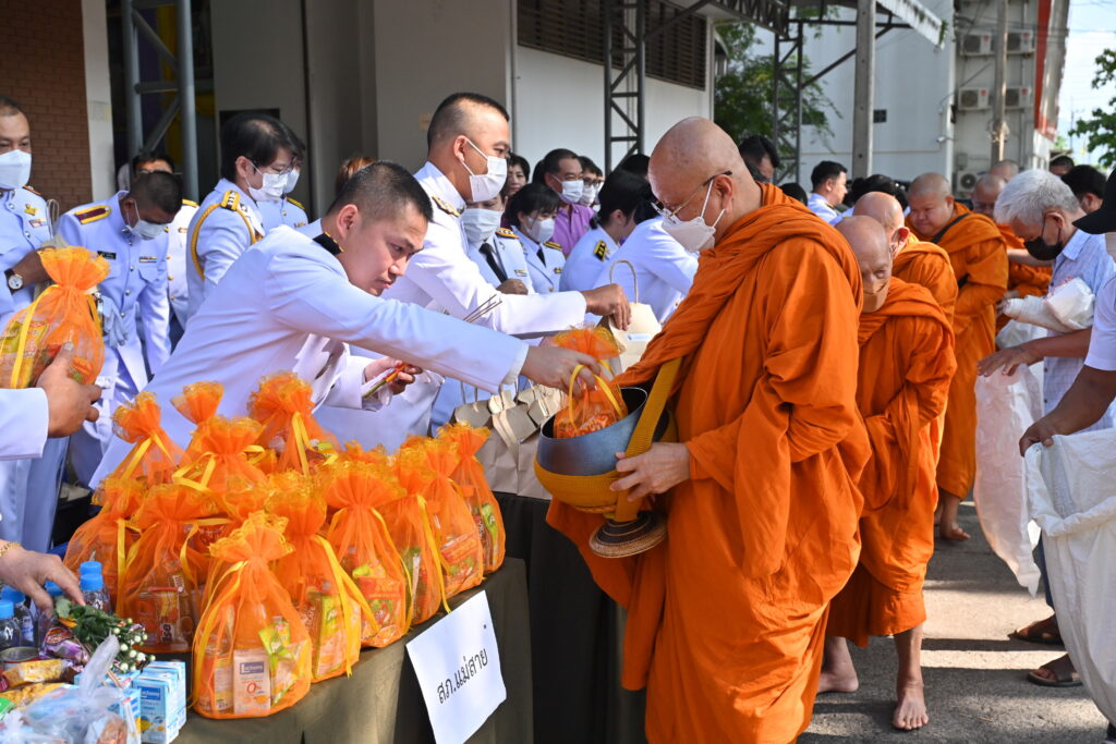 เวลา 08.30 น. นายณรงค์พล คิดอ่าน นายอำเภอแม่สาย พร้อมนางยุพิน คิดอ่าน นายกกิ่งกาชาดอำเภอแม่สาย และหัวหน้าหน่วยงานราชการอำเภอแม่สาย ถวายผ้าไตร จตุปัจจัยและเครื่องไทยธรรม แด่พระสงฆ์จำนวน 10 รูป ต่อมา ประธานในพิธีพร้อมหัวหน้าหน่วยงานราชการ ตัวแทนภาครัฐภาคเอกชน องค์กรปกครองส่วนท้องถิ่น กำนันผู้ใหญ่บ้าน พีน้องประชาชนในพื้นที่อำเภอแม่สาย ได้ร่วมกันทำบุญตักบาตร พระสงฆ์ สามเณร จำนวน 46 รูป เพื่อถวายเป็นพระราชกุศล