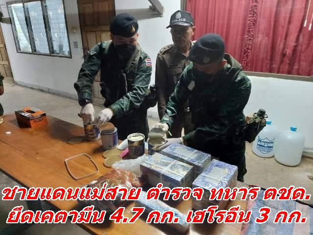 ชายแดนแม่สาย ตำรวจ ทหาร ตชด. ยึดเคตามีน 4.7 กก. เฮโรอีน 3 กก.