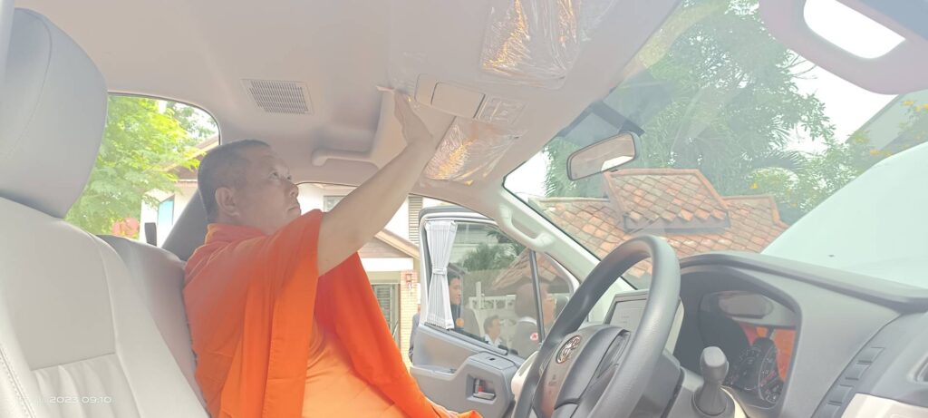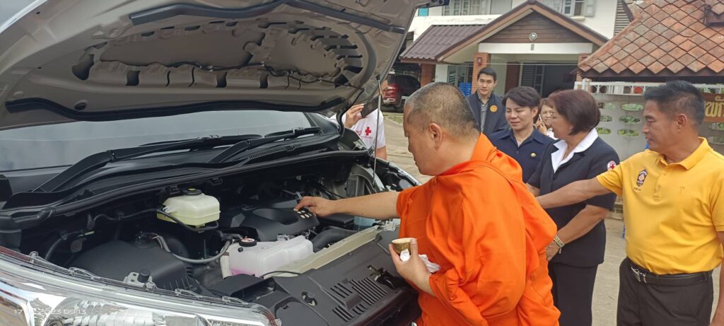 โดยทางกิ่งกาชาดอำเภอแม่สาย ได้นิมนต์ พระเดชพระคุณพระภาวนาโกศลเถร วิ. (ชูวิทย์ อัคฺควิชฺโช) รองเจ้าคณะจังหวัดเชียงราย เจ้าอาวาสวัดมงคลธรรมกายาราม ทำพิธีเจิมรถตู้คันใหม่ของกิ่งกาชาดอำเภอแม่สาย เพื่อความเป็นสิริมงคล