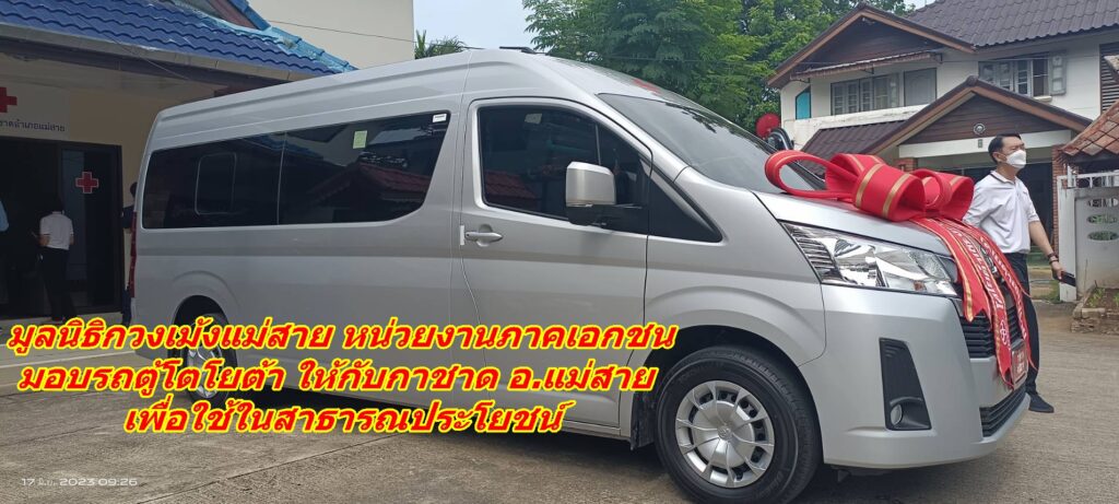 มูลนิธิกวงเม้งแม่สาย หน่วยงานภาคเอกชน มอบรถตู้โตโยต้า ให้กับกาชาดแม่สาย เพื่อใช้ในสาธารณประโยชน์