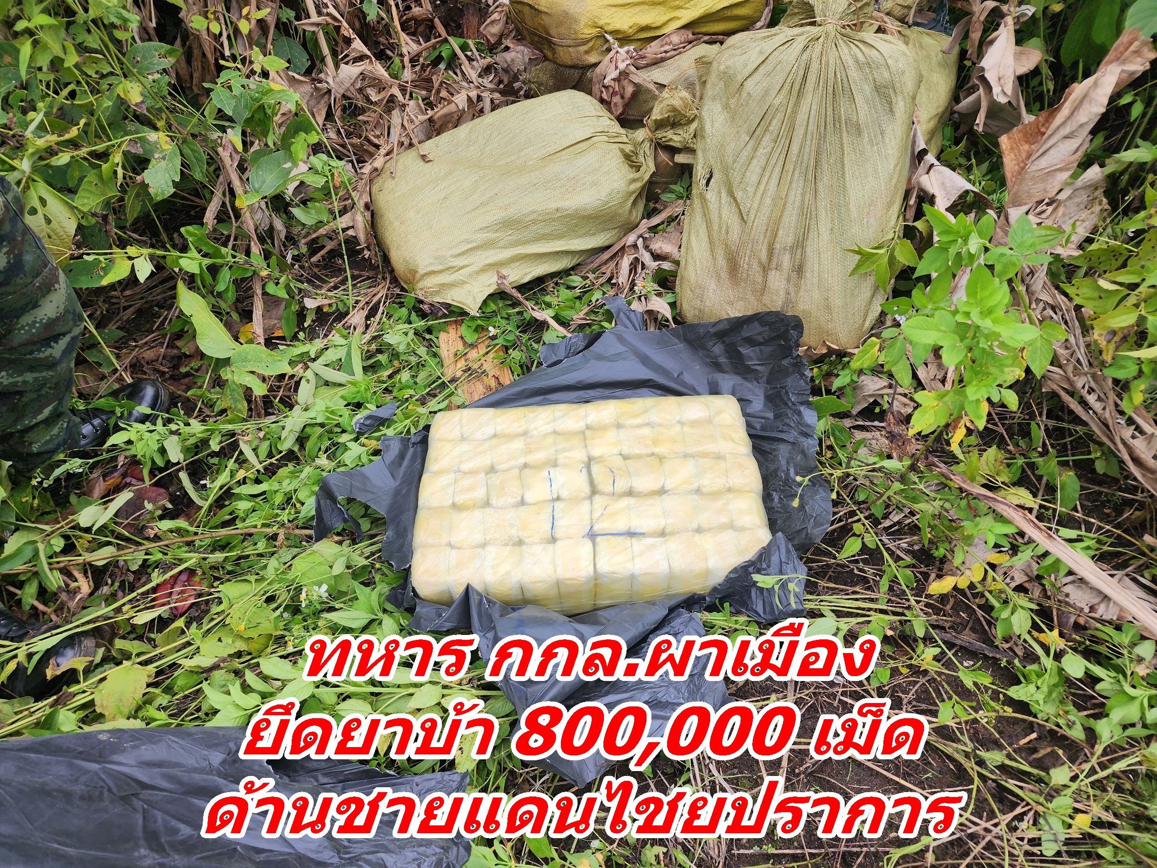 ทหาร กกล.ผาเมือง ยึดยาบ้า 800,000 เม็ด ด้านชายแดนไชยปราการ