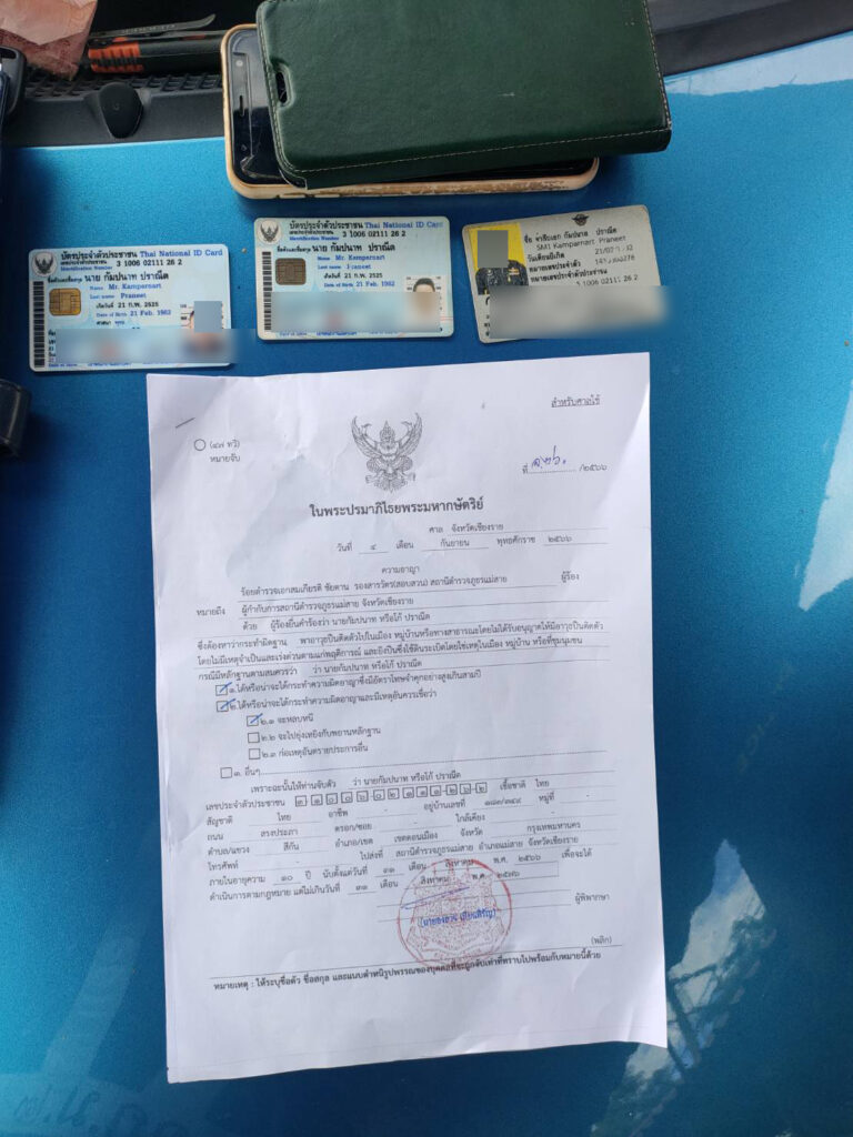 วันนี้ 6 ก.ย.66 เวลา 14.30 น. เจ้าหน้าที่ทหารชุดกองร้อยหมวดเคลื่อนที่เร็วที่ 2 กกล.ผาเมือง เจ้าหน้าที่ตำรวจชุดปฏิบัติการด่านตรวจถ้ำปลา สภ.แม่สาย ได้ปฏิบัติหน้าที่ตั้งจุดตรวจจุดสกัดการกระทำผิดกฎหมาย บริเวณด่านตรวจถ้ำปลา ม.3 ต.โป่งงาม อ.แม่สาย จ.เชียงราย ในเวลาดังกล่าวทางเจ้าหน้าที่ได้ขออนุญาตตรวจค้นรถเก๋งยี่ห้อฮอนด้า บริโอ้ สีเขียว 1 กย 8844 กรุงเทพฯ ทราบชื่อคนขับขี่รถตามเอกสาร ชื่อนายกัมปนาท ( ขอสงวนนามสกุล หรือแม็ค ) อายุ 40 ปี อยู่บ้านเลขที่ 183 ถ.สรงประภา เขตดอนเมือง กทม. ที่มีประวัติถูกหมายจับของศาลอาญาเชียงราย ในคดีพกพาอาวุธปืนติดตัวโดยไม่ได้รับอนุญาตให้มีอาวุธปืนติดตัวโดยไม่มีเหตุจำเป็นและเร่งด่วน ตามแก่ความผิดฐาน และยิงปืนซึ่งใช้ดินระเบิดโดยใช่เหตุ ในเมือง หมู่บ้าน หรือชุมชน บริเวณร้านสวนอาหารกุ้งเต้นขุนน้ำนางนอน ม.9 ต.โป่งผา อ.แม่สาย จ.เชียงราย ในวันที่ 31 ส.ค.66 เวลา 18.20 น. ที่ผ่านมา ทางเจ้าหน้าที่ชุดจับกุมจึงได้แจ้งสิทธิ์ต่อผู้ต้องหาให้ทราบ พร้อมนำตัวทำแผนประกอบรับคำสภาพบริเวณร้านสวนอาหารกุ้งเต้นขุนน้ำนางนอน และนำตัวไปขยายผลตรวจค้น (บริเวณบ้านแฟนสาวของผู้ต้องหาย่านตลาดไม้ลุงขน ) ม.10 ต.แม่สาย อ.แม่สาย พบอาวุธปืน .38 พร้อมเครื่องกระสุน 6 นัด ปลอกลูกกระสุนที่ยิงแล้วอีก 6 นัด และเครื่องแบบทหารติดยศพันตรี เจ้าหน้าที่ชุดจับกุมจึงได้นำตัวผู้ต้องหาพร้อมของกลางทั้งหมดนำส่งพนักงานสอบสวน สภ.แม่สาย เพื่อดำเนินคดี ผู้กองแม็ค 18 มงกุฎ รายนี้กันต่อไป เบื้องต้นทางผู้ต้องหาให้การปฏิเสธทุกข้อกล่าวหา….