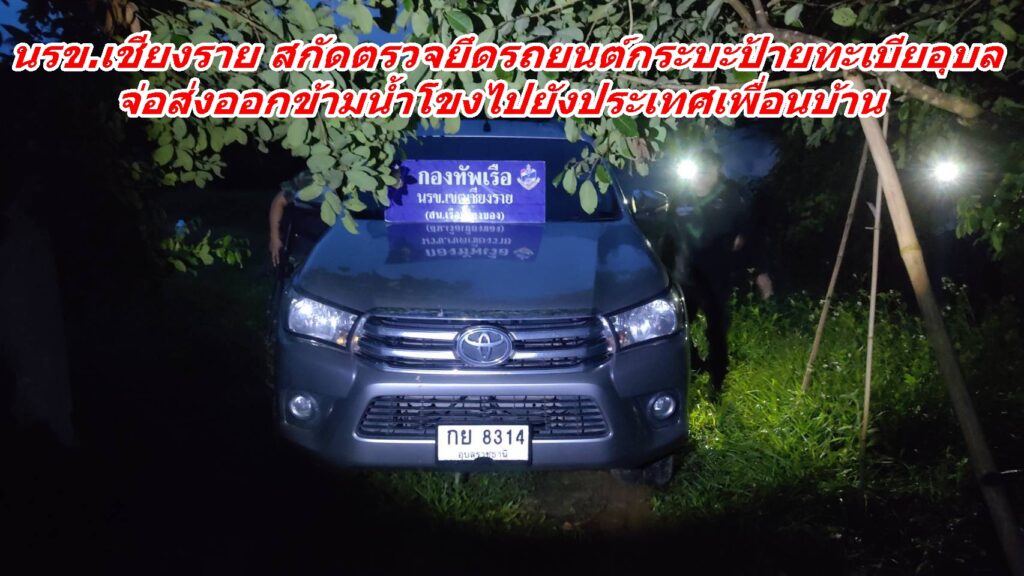 นรข.เชียงราย สกัดตรวจยึดรถยนต์กระบะป้ายทะเบียอุบล จ่อส่งออกข้ามน้ำโขงไปยังประเทศเพื่อนบ้าน