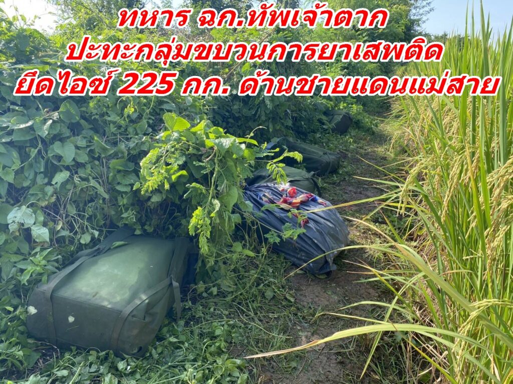 ทหาร ฉก.ทัพเจ้าตาก ปะทะกลุ่มขบวนการยาเสพติด ยึดไอซ์ 225 กก. ด้านชายแดนแม่สาย