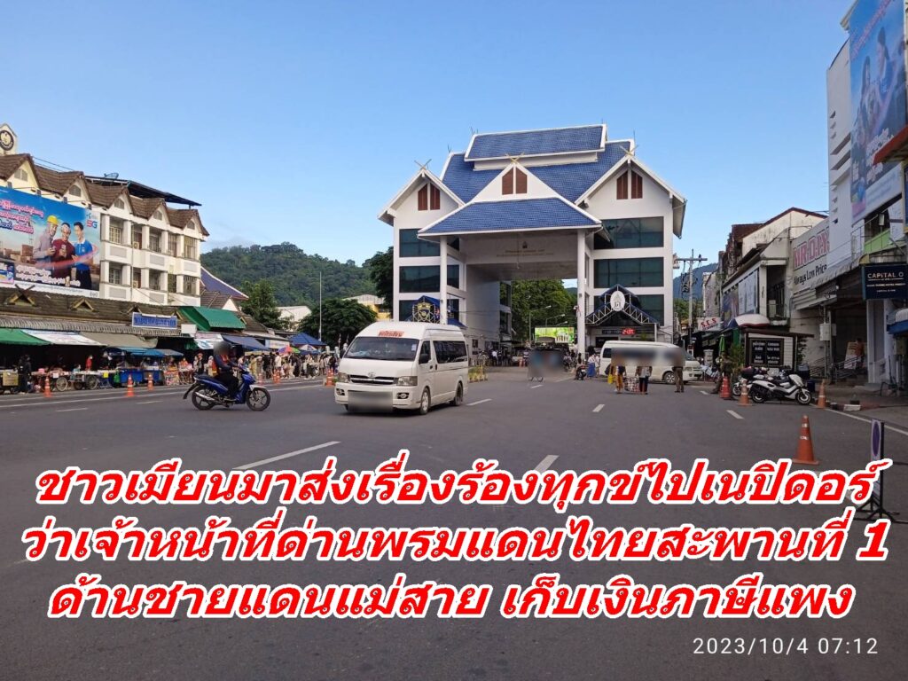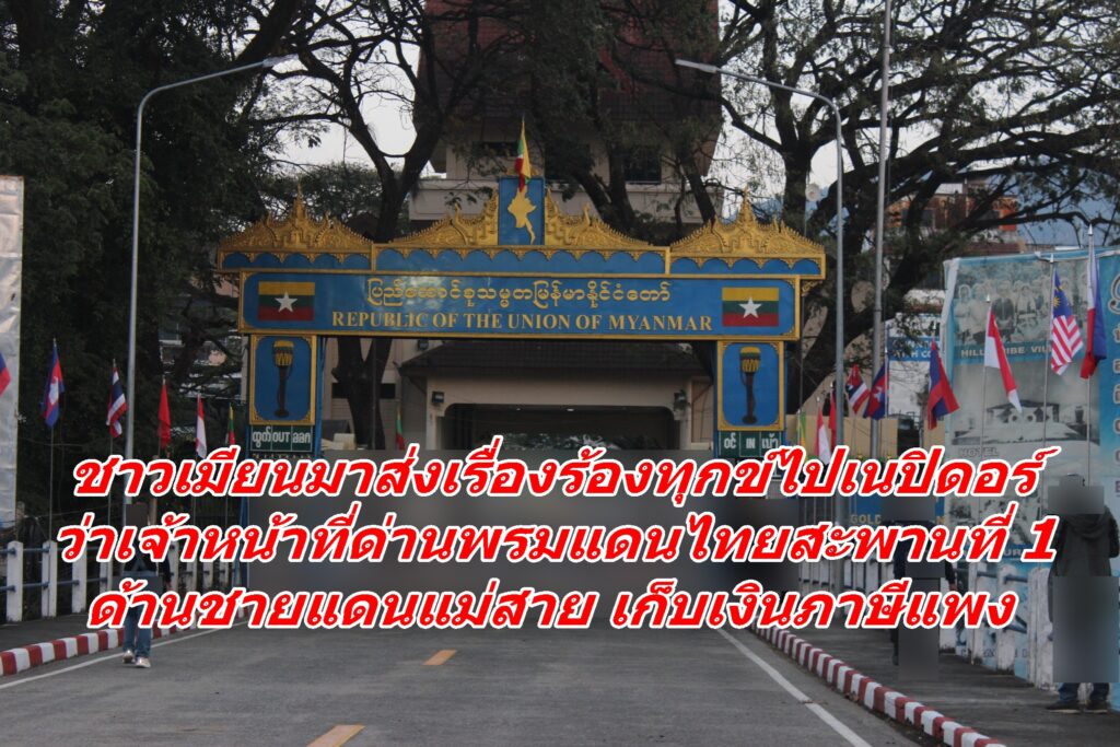 ชาวเมียนมาส่งเรื่องร้องทุกข์ไปเนปิดอร์ ว่าเจ้าหน้าที่ด่านพรมแดนไทยสะพานที่ 1ด้านชายแดนแม่สาย เก็บเงินภาษีแพง