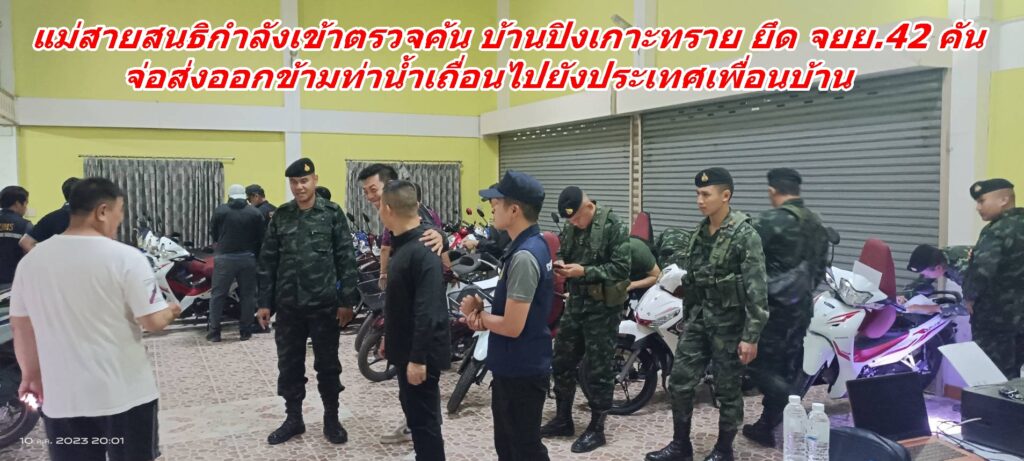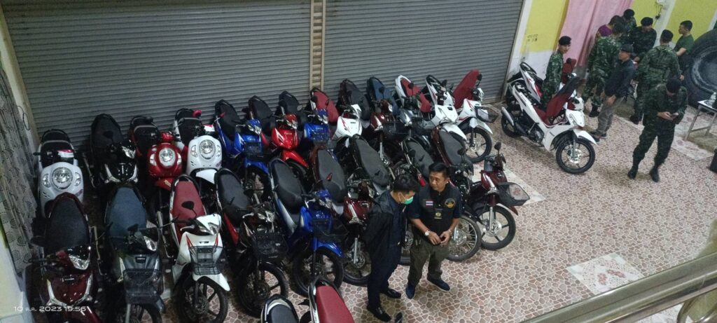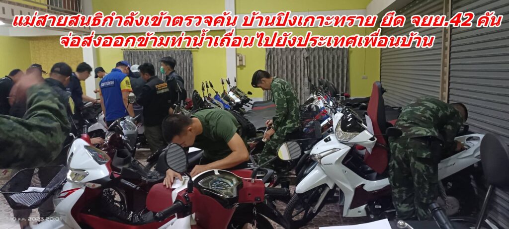 แม่สายสนธิกำลังเข้าตรวจค้น บ้านปิงเกาะทราย ยึด จยย.42 คัน มูลค่ากว่า 3.5 ล้านบาท จ่อส่งออกข้ามท่าน้ำเถื่อนไปยังประเทศเพื่อนบ้าน