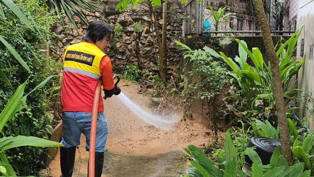 ต่อมา ชาวบ้านจึงแจ้งไปยังเจ้าหน้าที่ป้องกันบรรเทาสาธารณภัยเทศบาลเวียงพางคำ อ.แม่สาย เพื่อเข้าไปล้างทำความสะอาดบ้านเรือนของประชาชน และถนน ด้านกลุ่มชาวบ้านที่ได้รับผลกระทบได้ร้องเรียนผู้สื่อข่าวในพื้นที่ว่า ตั้งแต่มีการก่อสร้างสกายวอล์ค ที่วัดดอยเวา เมื่อฝนตกทีไรน้ำจะพัดเอาเศษดินโคลนลงมาใส่บ้านทุกครั้ง และเมื่อฝนหยุดตกต้องช่วยกันล้างทำความสะอาดบ้านเรือนทุกครั้ง เพราะได้รับผลกระทบจากเศษดิน – หิน –โคลน จะไหลเข้าไปทับทมในบ้านของพวกตน ที่ผ่านมาได้ร้องเรียนไปหลายหน่วยงานแล้วแม้กระทั่งกลุ่มผู้รับเหมาที่มาทำสกายวอล์คก็เคยเข้าไปคุยขอให้ช่วยแก้ไขปัญหาที่เกิดขึ้น โดยให้ทำกำแพงกั้นดินเพื่อที่เวลาฝนตกดิน หรือเศษหินโคลนจะได้ไม่ไหลพัดลงเข้าไปในบ้านเรือน ซึ่งทางผู้รับเหมาก็ได้รับปากว่าจะทำให้ แต่ก็ไม่ได้ดำเนินการใดๆ สร้างผลกระทบความเสียหายตกกับพวกตนมาโดยตลอดในฤดูหน้าฝน จึงอยากฝากไปถึงหน่วยงานที่รับผิดชอบเกี่ยวข้องช่วยเจรจากับทางกลุ่มผู้รับเหมาที่ทำสกายวอล์ค ให้เร่งแก้ไขปัญหาทุกข์ของชาวบ้านเป็นการด่วน ซึ่งทางกลุ่มชาวบ้านบางส่วนที่ได้รับผลกระทบได้รวมตัวกันเพื่อทำเรื่องจะไปร้องทุกข์ไปยังศูนย์ดำรงธรรม อ.แม่สาย เพื่อให้ทางเจ้าหน้าที่ช่วยเจรจากับกลุ่มผู้รับเหมาในการแก้ไขปัญหาที่เกิดขึ้น..