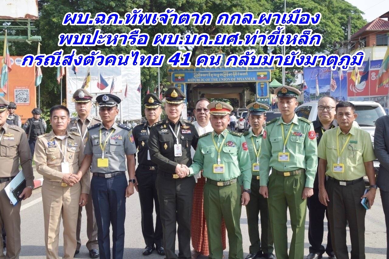 ผบ.ฉก.ทัพเจ้าตาก กกล.ผาเมือง พบปะหารือ ผบ.บก.ยศ.ท่าขี้เหล็ก กรณีส่งตัวคนไทย 41 คน กลับมายังมาตุภูมิ
