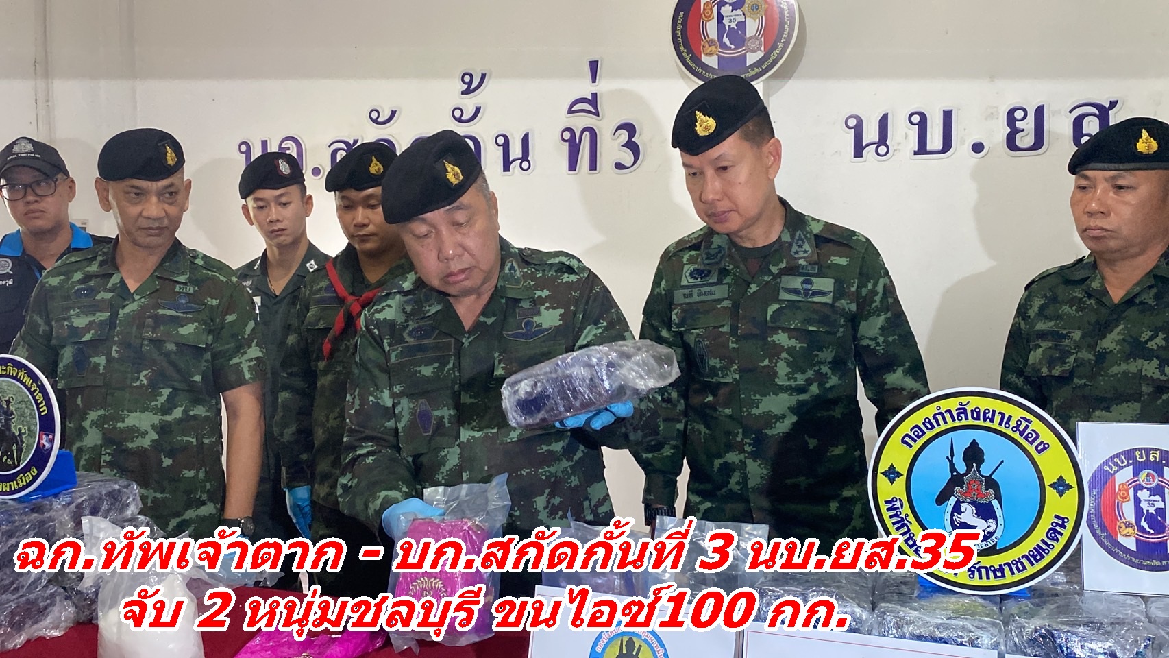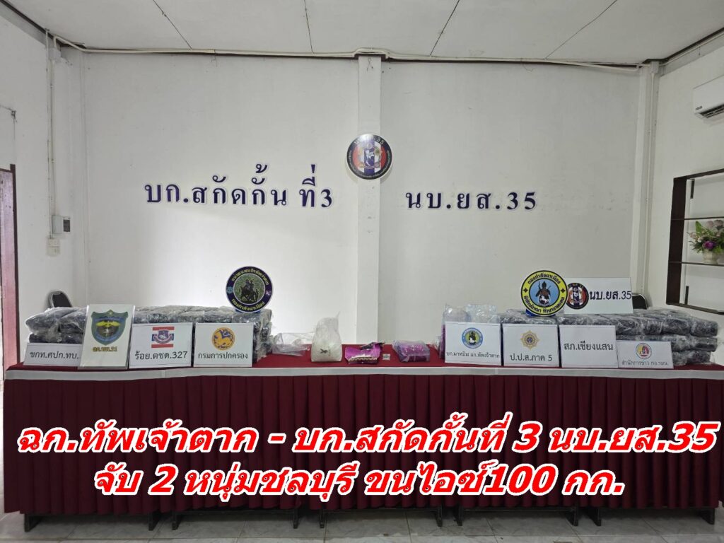 ฉก.ทัพเจ้าตาก – บก.สกัดกั้นที่ 3 นบ.ยส.35 จับ 2 หนุ่มชลบุรี ขนไอซ์100 กก.