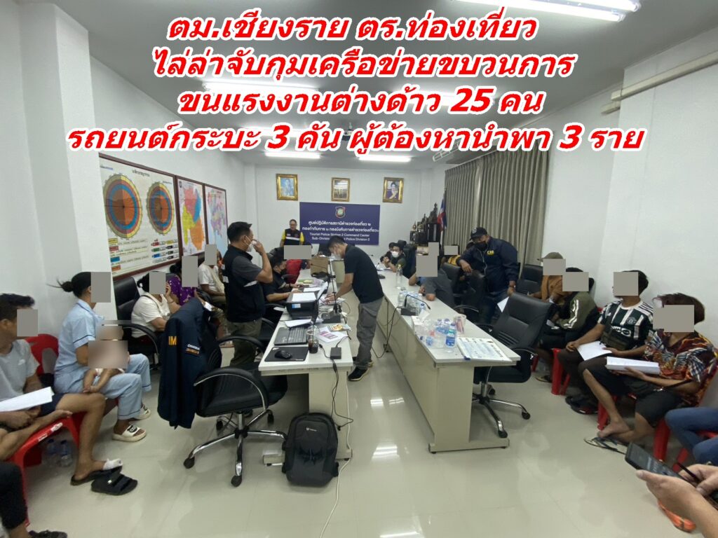 ตม.เชียงราย ตร.ท่องเที่ยว ไล่ล่าจับกุมเครือข่ายขบวนการขนแรงงานต่างด้าว 25 คน รถยนต์กระบะ 3 คัน ผู้ต้องหานำพา 3 ราย