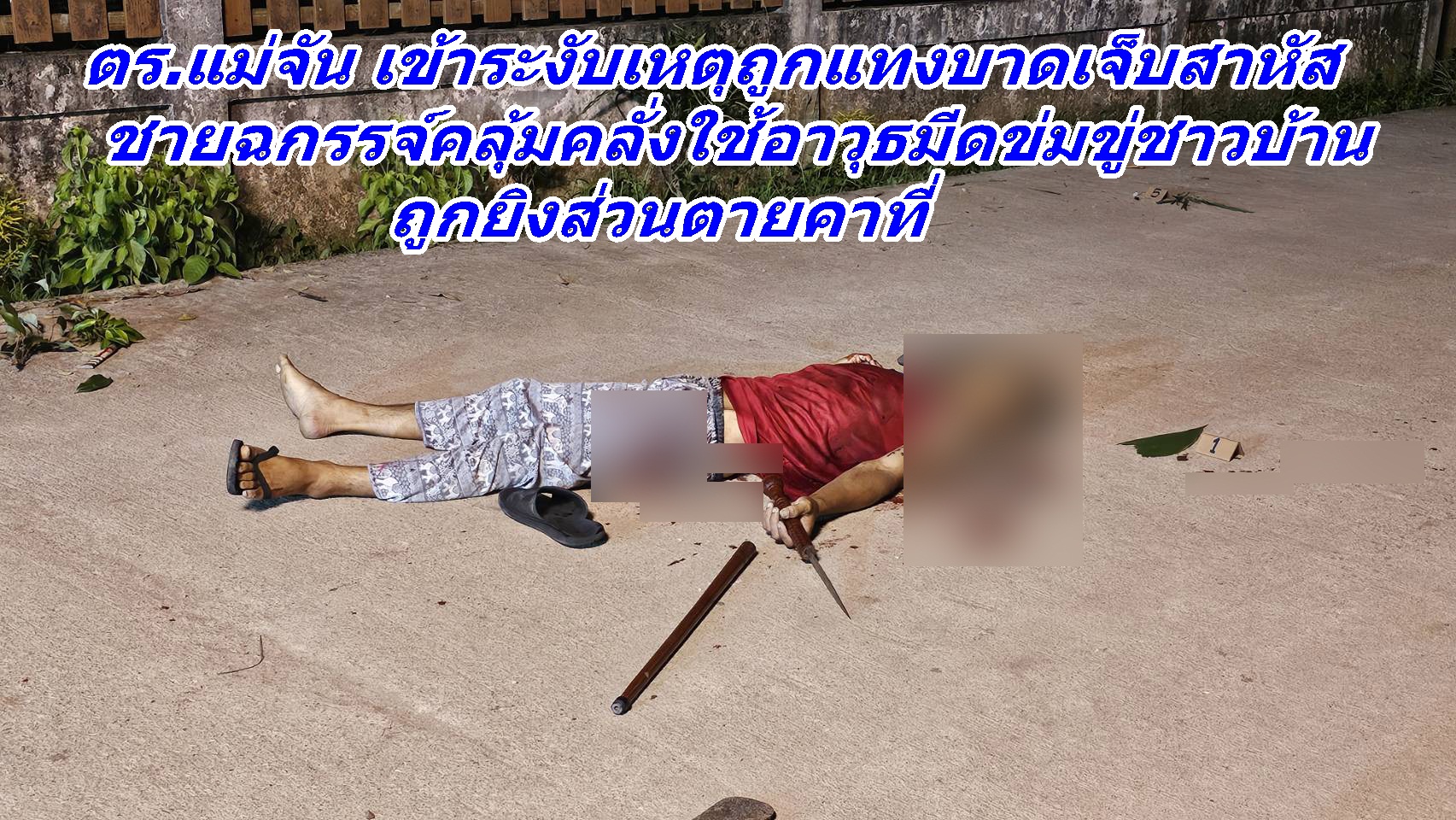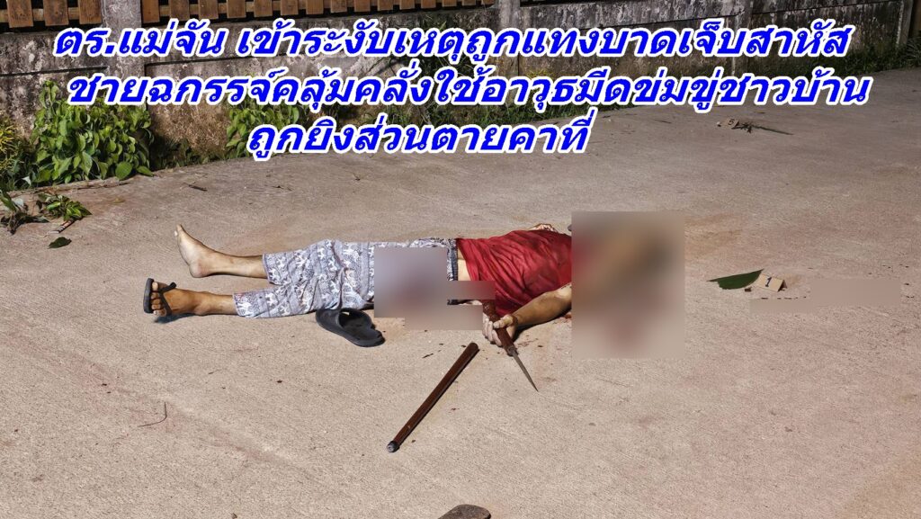 ตร.แม่จัน เข้าระงับเหตุถูกแทงบาดเจ็บสาหัส ชายฉกรรจ์คลุ้มคลั่งใช้อาวุธมีดข่มขู่ชาวบ้าน ถูกยิงส่วนดับคาที่