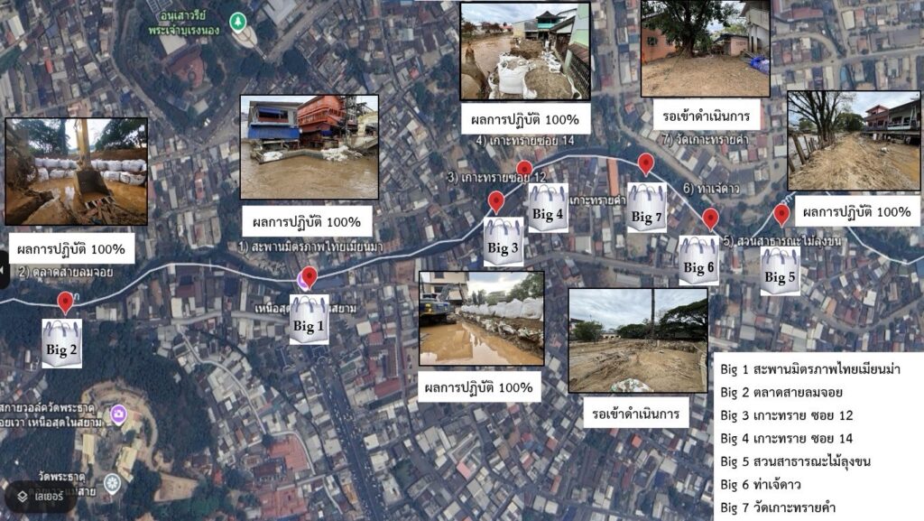 4.การดำเนินการปิดจุดรอยรั่วโดยใช้บิ๊กแบ็ค จำนวน 7 จุด 4.1 จุดใต้สะพานข้ามแม่น้ำสาย แห่งที่ 1 ไทย-เมียนมา (ผลการดำเนินการแล้วเสร็จ)