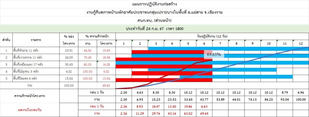 คิดเป็น ร้อยละ 69.65 ของแผนการดำเนินการ