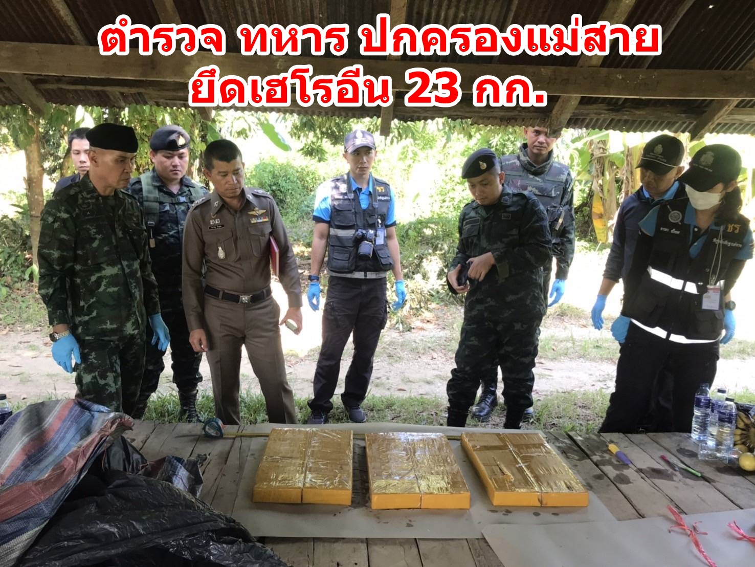 ตำรวจ ทหาร ปกครองแม่สาย ยึดเฮโรอีน 23 กก.