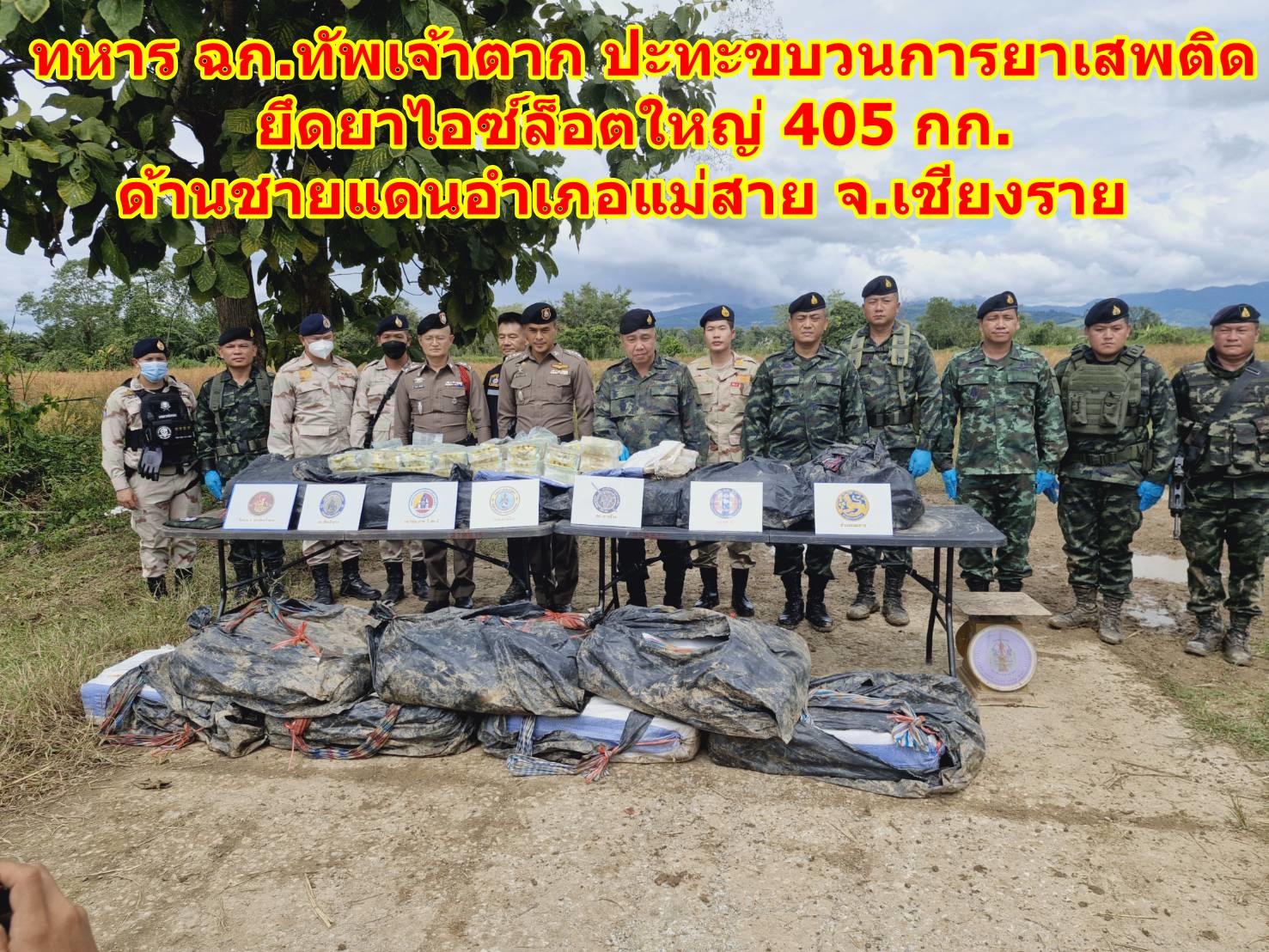 ทหาร ฉก.ทัพเจ้าตาก ปะทะขบวนการยาเสพติด ยึดยาไอซ์ล็อตใหญ่ 405 กก. ด้านชายแดนอำเภอแม่สาย จ.เชียงราย