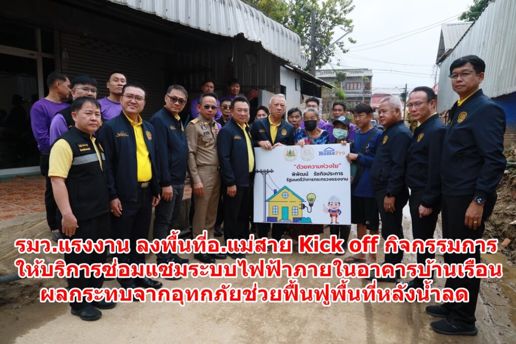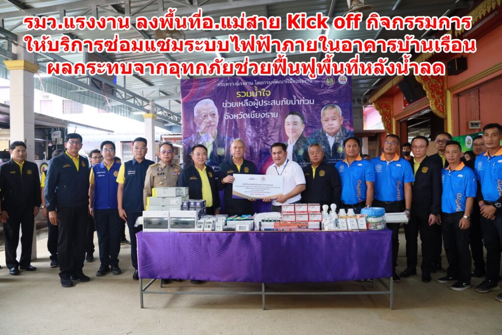 รมว.แรงงาน ลงพื้นที่อ.แม่สาย จ.เชียงราย Kick off กิจกรรมการให้บริการซ่อมแซมระบบไฟฟ้าภายในอาคารบ้านเรือนผู้ที่ได้รับผลกระทบจากอุทกภัย ช่วยฟื้นฟูพื้นที่หลังน้ำลดให้ประชาชนสามารถประกอบอาชีพได้