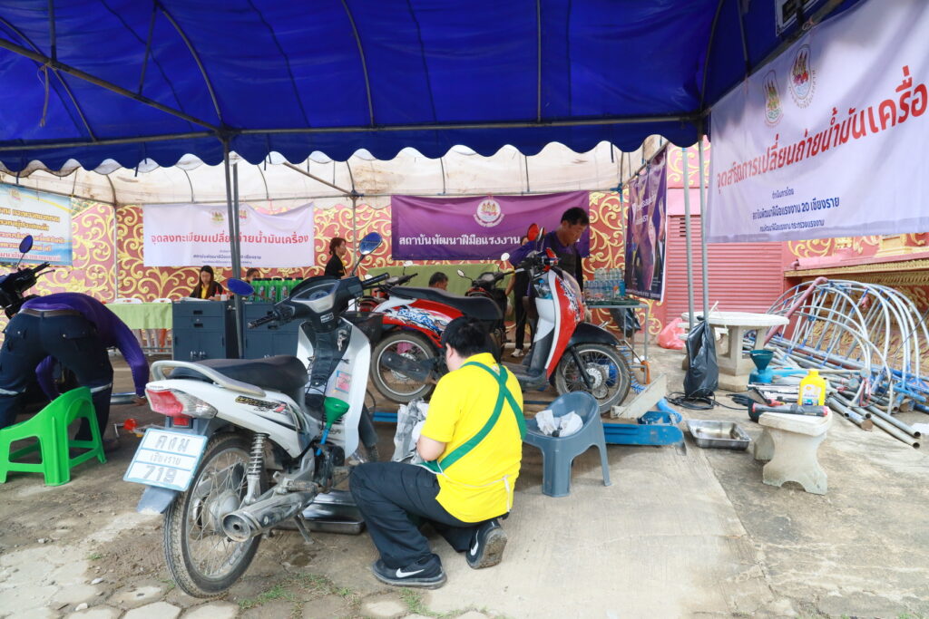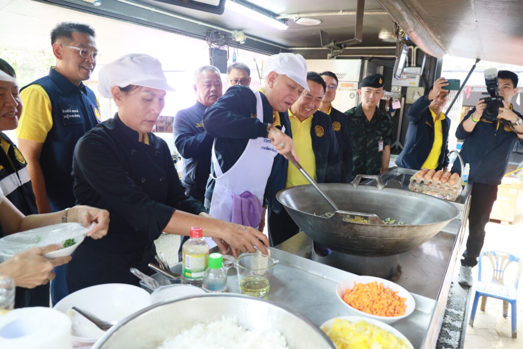 จากนั้น นายพิพัฒน์ รัชกิจประการ รัฐมนตรีว่าการกระทรวงแรงงาน ได้รับมอบวัสดุอุปกรณ์จากบริษัท โฮมโปรดักส์เซ็นเตอร์ จำกัด (มหาชน) มอบประโยชน์ทดแทนกรณีว่างงานเนื่องจากเหตุสุดวิสัยแก่ผู้ประกันตนมาตรา 33 และได้สาธิตการทำข้าวผัดหมู และมอบข้าวกล่องให้กับประชาชนในพื้นที่ ก่อนที่จะไปสาธิตการเติมน้ำมันหล่อลื่นรถจักรยานยนต์ และมอบกุญแจรถที่ตรวจเช็คเรียบร้อยแล้วให้กับผู้มารับบริการ และได้ตรวจเยี่ยมให้กำลังใจแก่ผู้ที่เข้าร่วมกิจกรรมจ้างงานเร่งด่วน พร้อมทั้งได้ไปเยี่ยมบ้านผู้ได้รับผลกระทบจากอุทกภัยบริเวณชุมชนเกาะทราย อ.แม่สาย จ.เชียงราย อีกด้วย