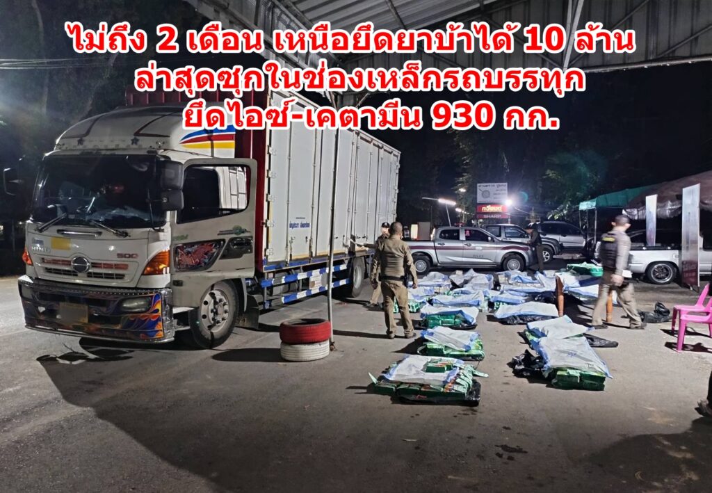 ไม่ถึง 2 เดือน เหนือยึดยาบ้าได้ 10 ล้าน ล่าสุดซุกในช่องเหล็กรถบรรทุก ยึดไอซ์-เคตามีน 930 กก.