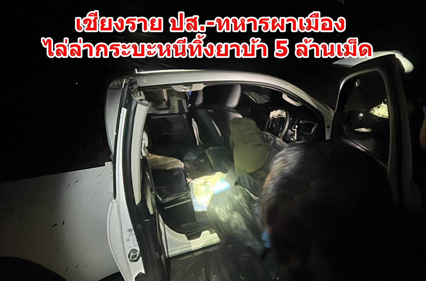 เชียงราย ปส.-ทหารผาเมือง ไล่ล่ากระบะหนีทิ้งยาบ้า 5 ล้านเม็ด