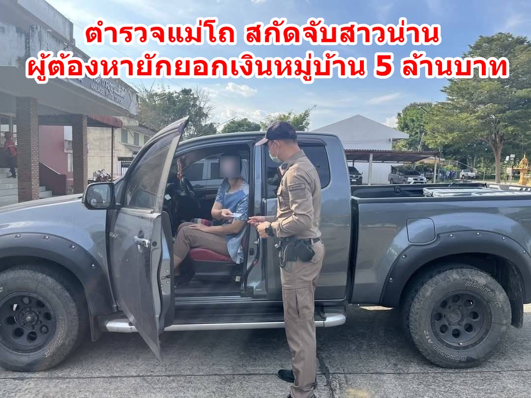 ตำรวจแม่โถ สกัดจับสาวน่าน ผู้ต้องหายักยอกเงินหมู่บ้าน 5 ล้านบาท