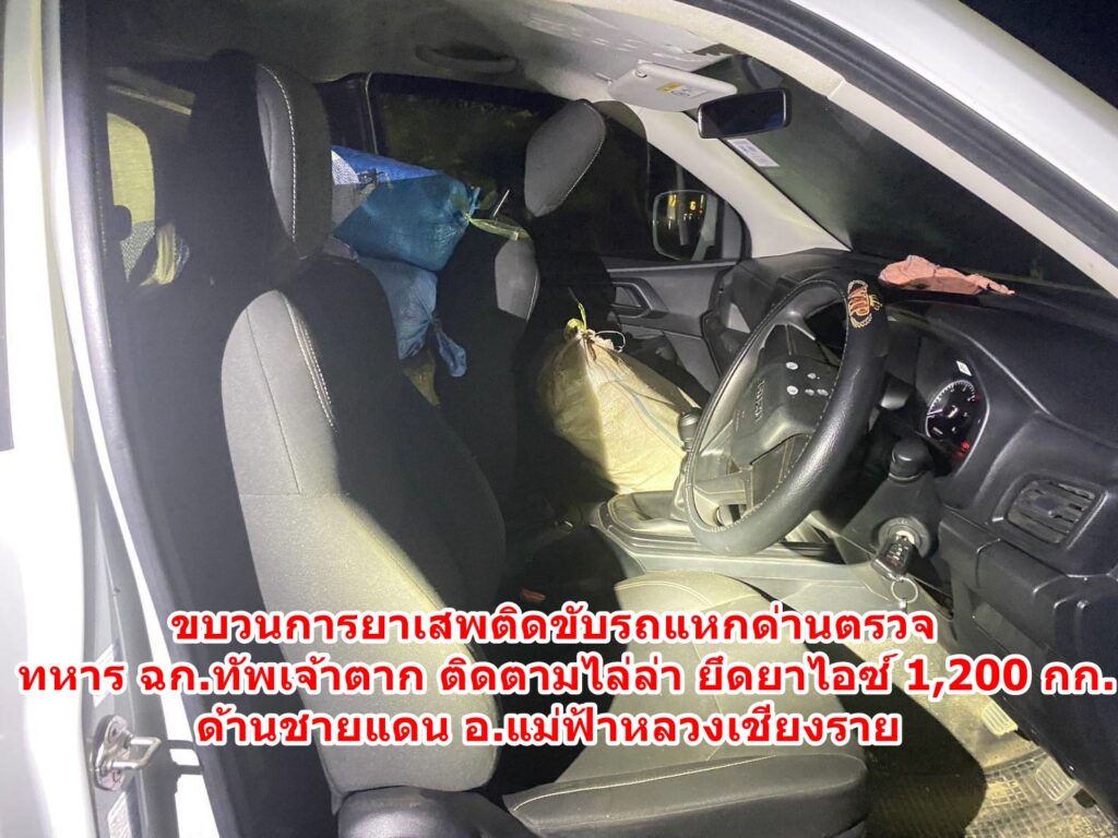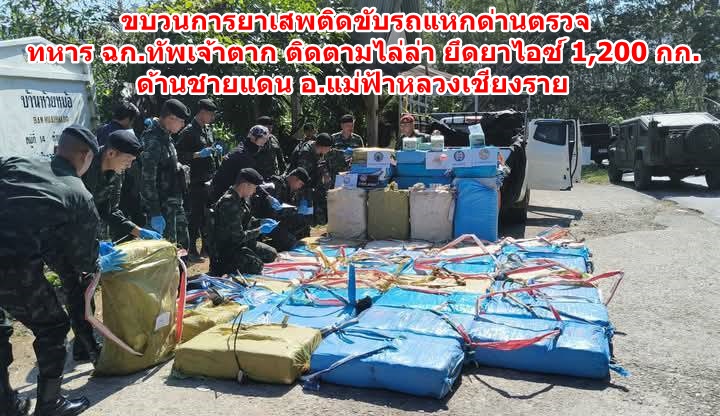 ขบวนการยาเสพติดขับรถแหกด่านตรวจ ทหาร ฉก.ทัพเจ้าตาก ติดตามไล่ล่า ยึดยาไอซ์ 1,200 กก. ด้านชายแดน อ.แม่ฟ้าหลวงเชียงราย