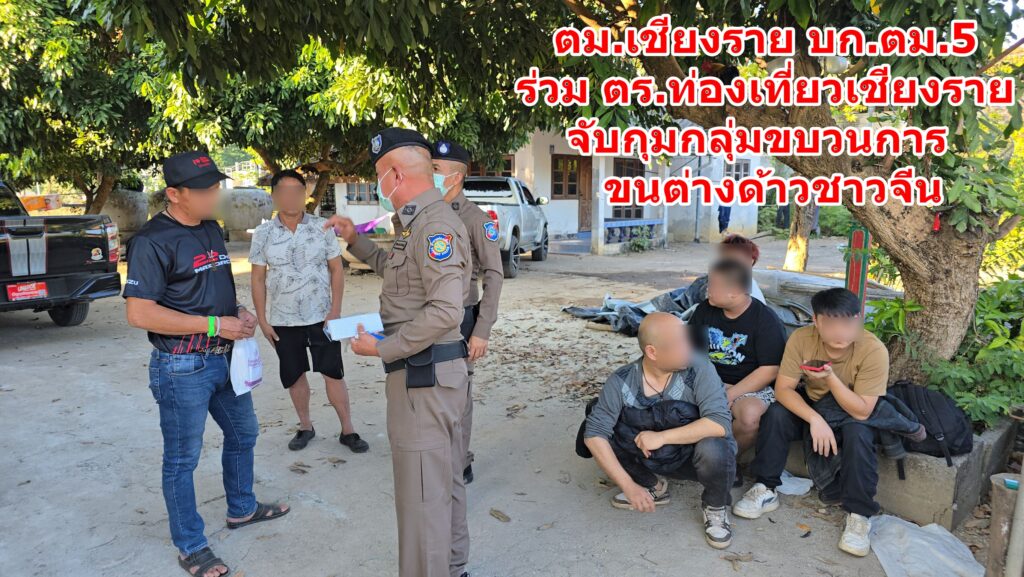 ตม.เชียงราย บก.ตม.5 ร่วม ตร.ท่องเที่ยวเชียงราย จับกุมกลุ่มขบวนการขนต่างด้าวจีนเทาเข้าเมืองโดยผิดกฎหมาย จากข้อมูลเชิงลึก ขบวนการค้าแรงงานต่างด้าวชาวจีน จะแอบลักลอบเข้ามาในประเทศไทยบริเวณแนวตะเข็บชายแดนด้าน อ.เชียงแสน อ.เชียงของ อ.แม่สาย ตามช่องทางธรรมชาติ หรือปลอมแปลงเอกสารเข้ามายังด่านตรวจของประเทศไทยด้านชายแดน จ.เชียงราย ซึ่งกลุ่มต่างด้าวเหล่านี้ที่จับได้จะจะพัวพันกับ แก๊งคอลเซ็นเตอร์ – การพันพนันออนไลน์ – หรือสิ่งผิดกฏหมายนอกระบบ