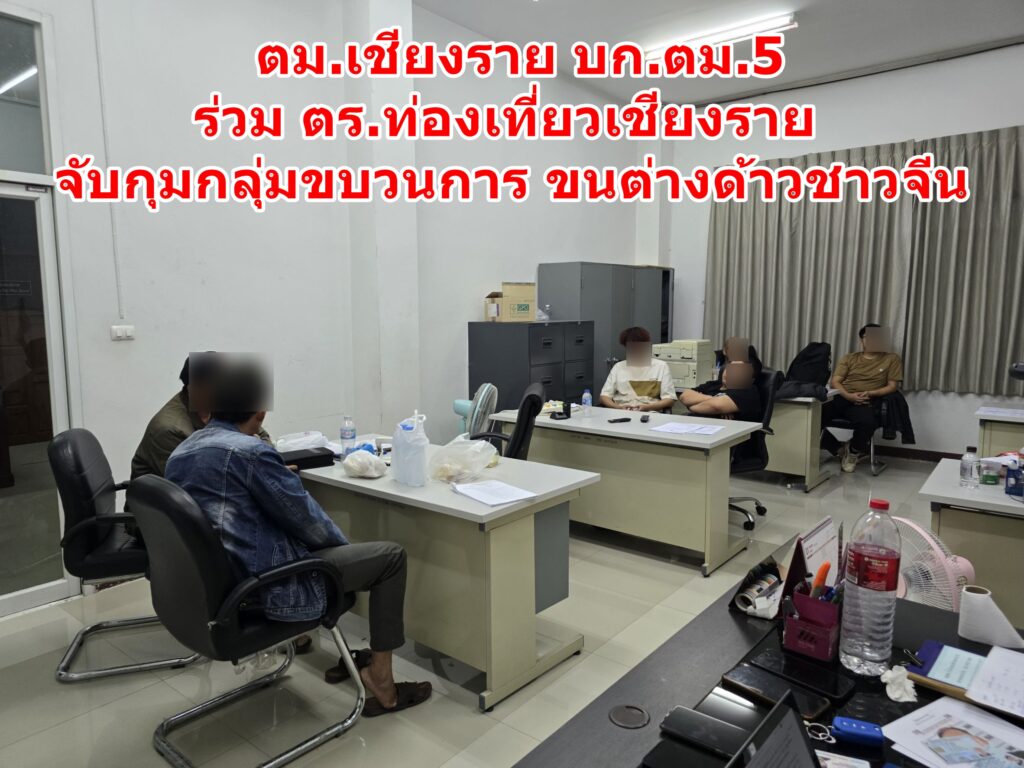 ตม.เชียงราย บก.ตม.5 ร่วม ตร.ท่องเที่ยวเชียงราย จับกุมกลุ่มขบวนการขนต่างด้าวชาวจีนเทา