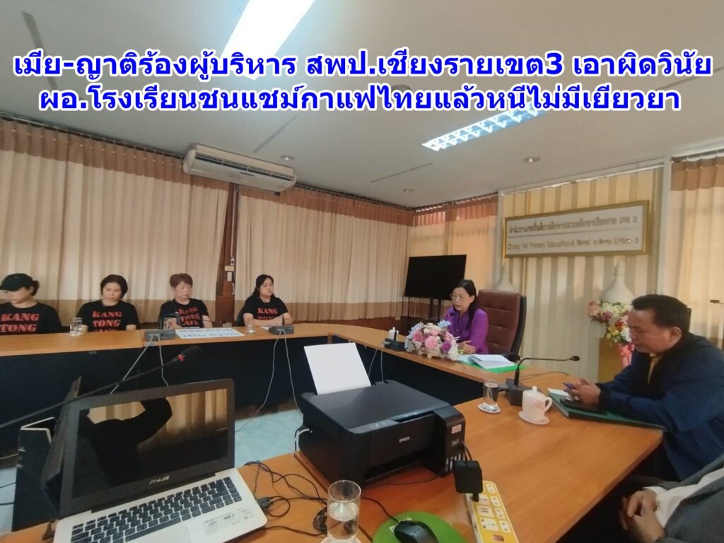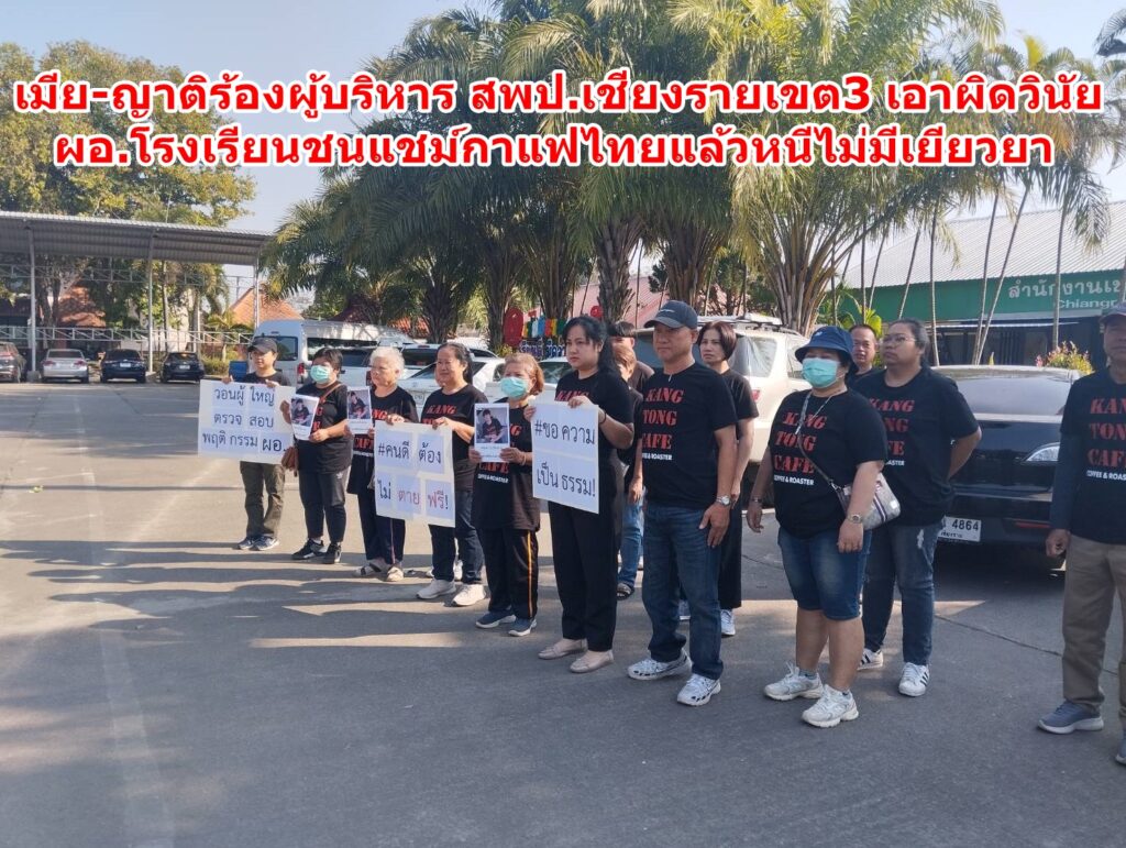 เมีย-ญาติร้องผู้บริหาร สพป.เชียงรายเขต3 เอาผิดวินัย ผอ.โรงเรียนชนแชม์กาแฟไทยแล้วหนีไม่มีเยียวยา