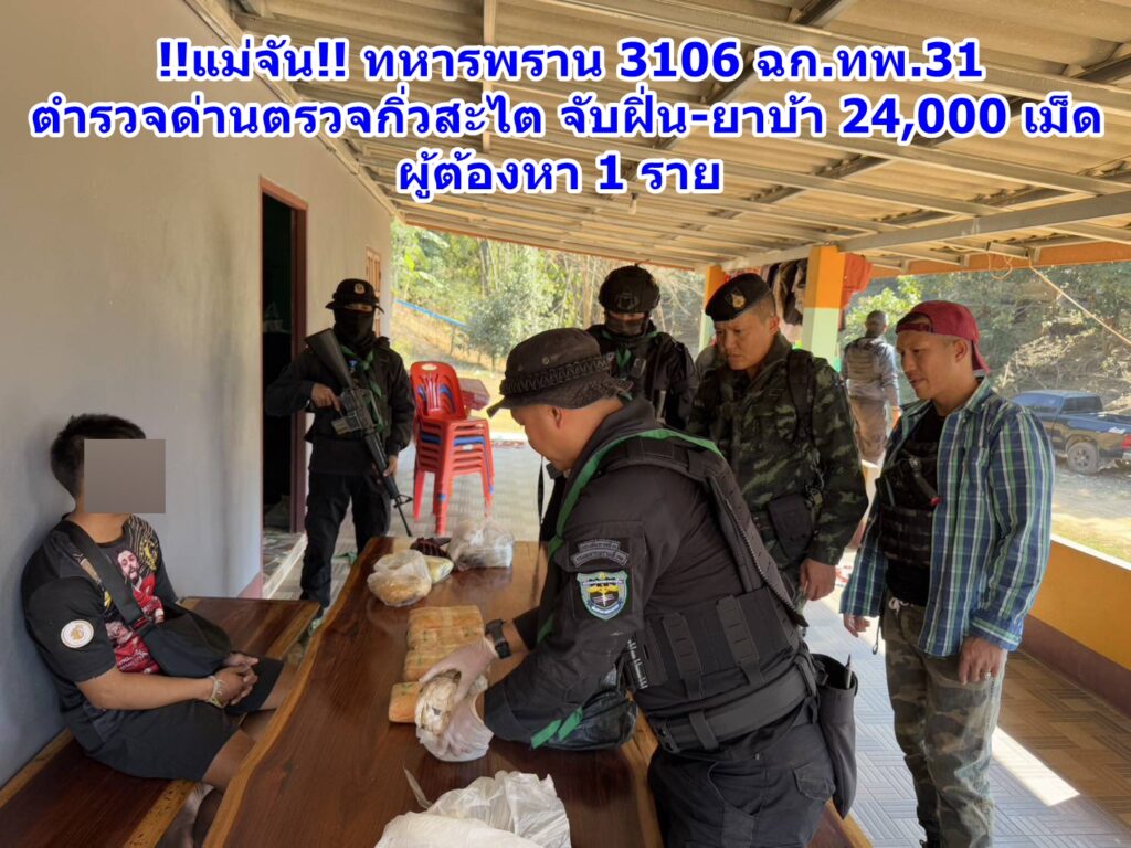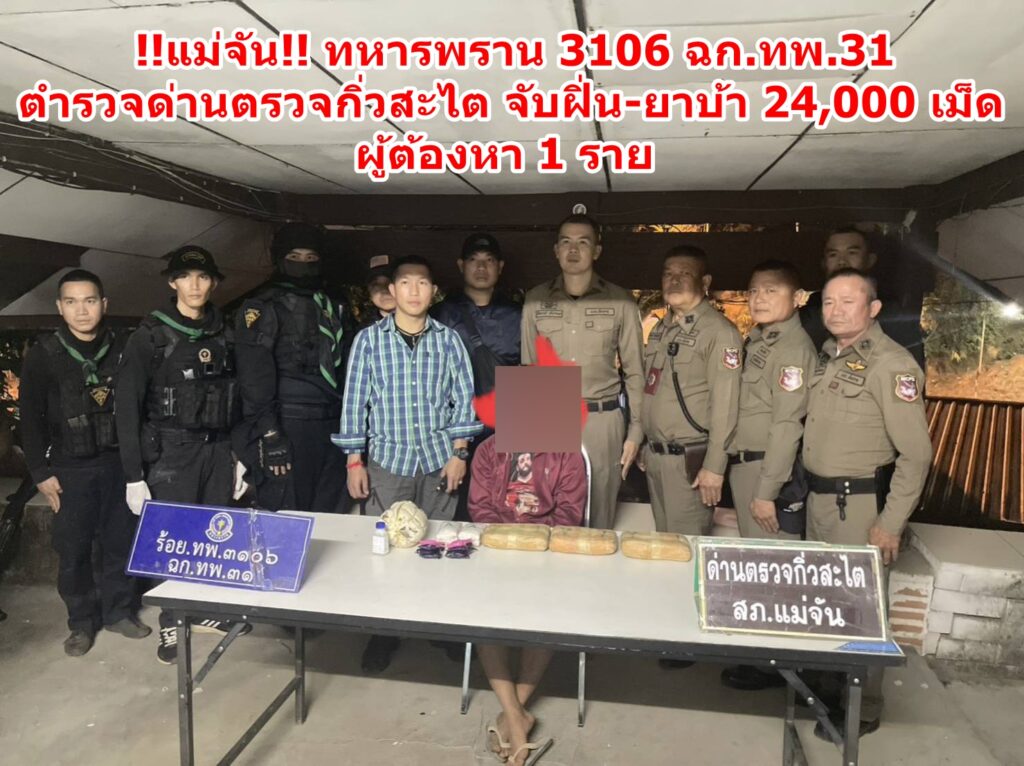 !!แม่จัน!! ทหารพราน 3106 ฉก.ทพ.31 ตำรวจด่านตรวจกิ่วสะไต จับฝิ่น-ยาบ้า 24,000 เม็ด ผู้ต้องหา 1 ราย