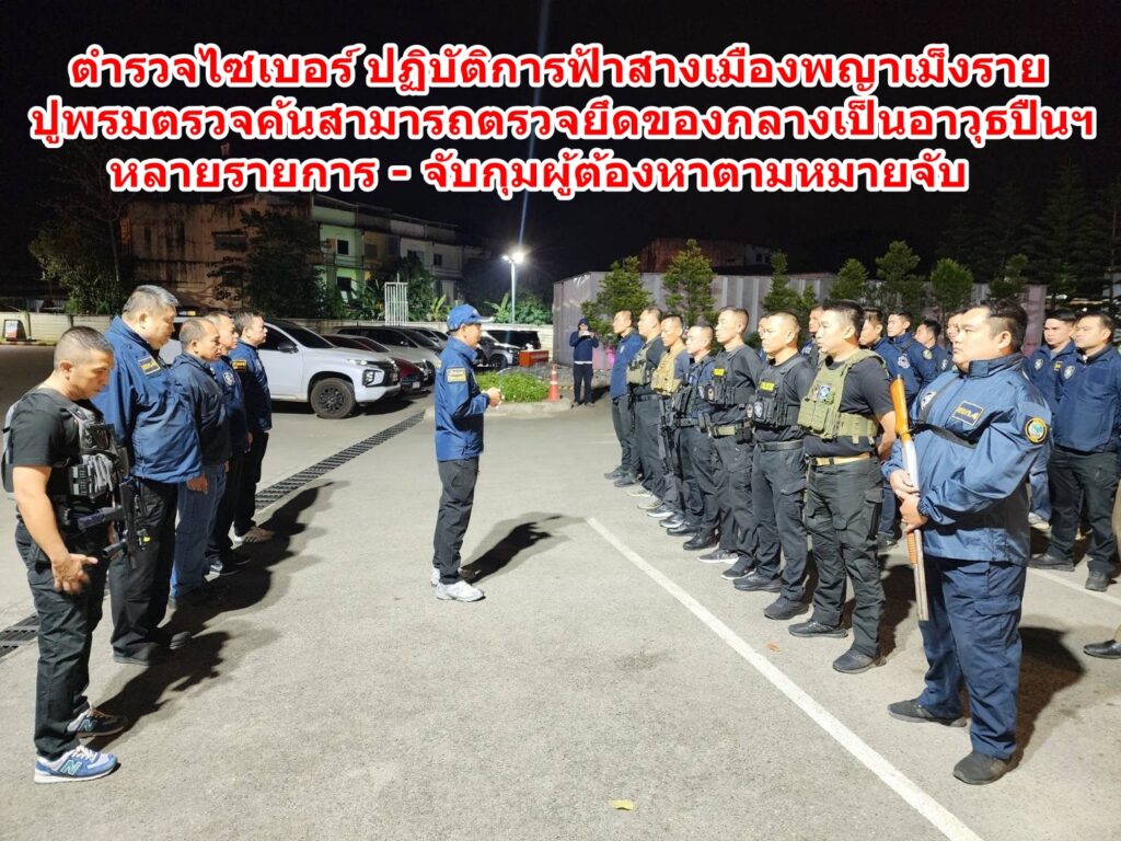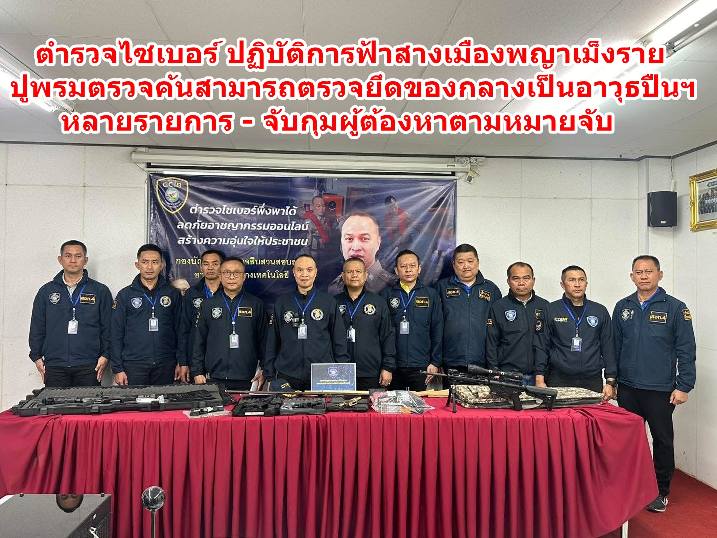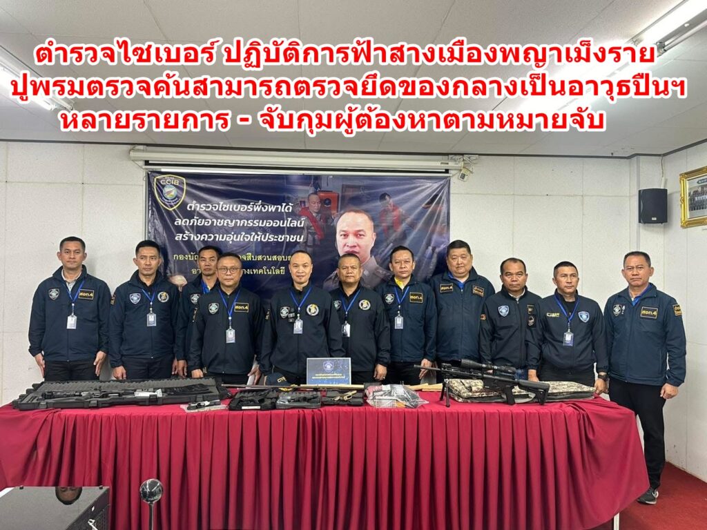 ตำรวจไซเบอร์ ปฏิบัติการฟ้าสางเมืองพญาเม็งราย ปูพรมตรวจค้นสามารถตรวจยึดของกลางเป็นอาวุธปืนฯ หลายรายการ – จับกุมผู้ต้องหาตามหมายจับ