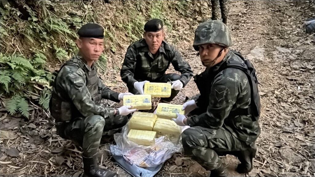 เมื่อรุ่งเช้าของวันที่ 2 ก.พ. 68 เวลา 05.00 น. เจ้าหน้าที่ทหาร ร้อย.ม.2 ฉก.ทัพเจ้าตาก กกล.ผาเมือง ได้จัดกำลัง จำนวน 1 ชป. ทำการเฝ้าตรวจเพื่อป้องกันและสกัดกั้นตามแนวชายแดน ในการกระทำผิดตาม พ.ร.บ.ประมวลกฎหมายยาเสพติด บริเวณ บ.ผาหมี ม.6 ต.เวียงพางคำ อ.แม่สาย จ.เชียงราย ในขณะนั้นได้ตรวจพบกลุ่มบุคคลต้องสงสัยสะพายเป้ ประมาณ 5 – 10 คน เดินเท้ามาตามเส้นทางในแนวสันเขาของภูมิประเทศ จึงได้แสดงตัวเพื่อขอทำการตรวจค้น แต่กลุ่มบุคคลดังกล่าวได้ใช้อาวุธปืนไม่ทราบชนิดและขนาดยิงใส่ฝ่ายเรา จึงเกิดการปะทะกัน นานประมาณ 5 นาที ผลการปะทะฝ่ายเราปลอดภัย ไม่ทราบความสูญเสียของฝ่ายตรงข้าม หน่วยจึงได้จัดกำลังเพิ่มเติม จำนวน 2 ชป. เข้าวางกำลังควบคุมพื้นที่เกิดเหตุ เพื่อรอการพิสูจน์ทราบ พบมีกระสอบตกอยู่ 5 ใบ ภายในมียาบ้านับรวมได้ประมาณ 1,000,000 เม็ด เจ้าหน้าที่ทหารชุด ฉก.ทัพเจ้าตาก กกล.ผาเมือง จึงตรวจยึดพร้อมนำของกลางทั้งหมด ส่งพนักงานสอบสวน สภ.แม่สาย ดำเนินคดีเพื่อจะได้ขยายผลหากลุ่มขบวนการยาเสพติดที่ยึดได้ในครั้งนี้….