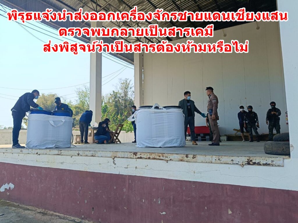พิรุธแจ้งนำส่งออกเครื่องจักรชายแดนเชียงแสน ตรวจพบกลายเป็นสารเคมีส่งพิสูจน์ว่าเป็นสารต้องห้ามหรือไม่
